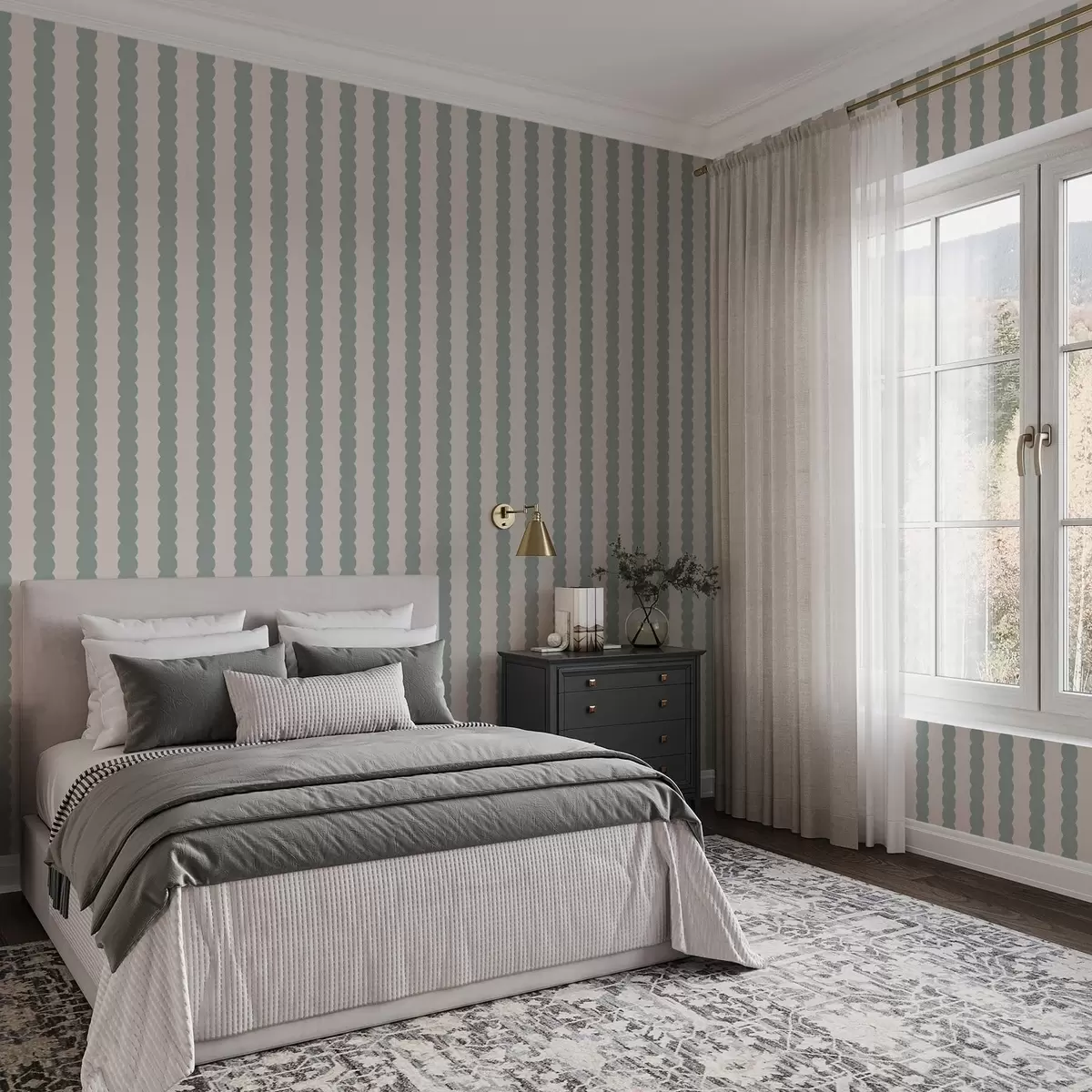 Ταπετσαρία Λουριδωτές ρίγες σε χρώμα ελιάς, σε μινιμαλιστικό στυλ Nr. a01182v1