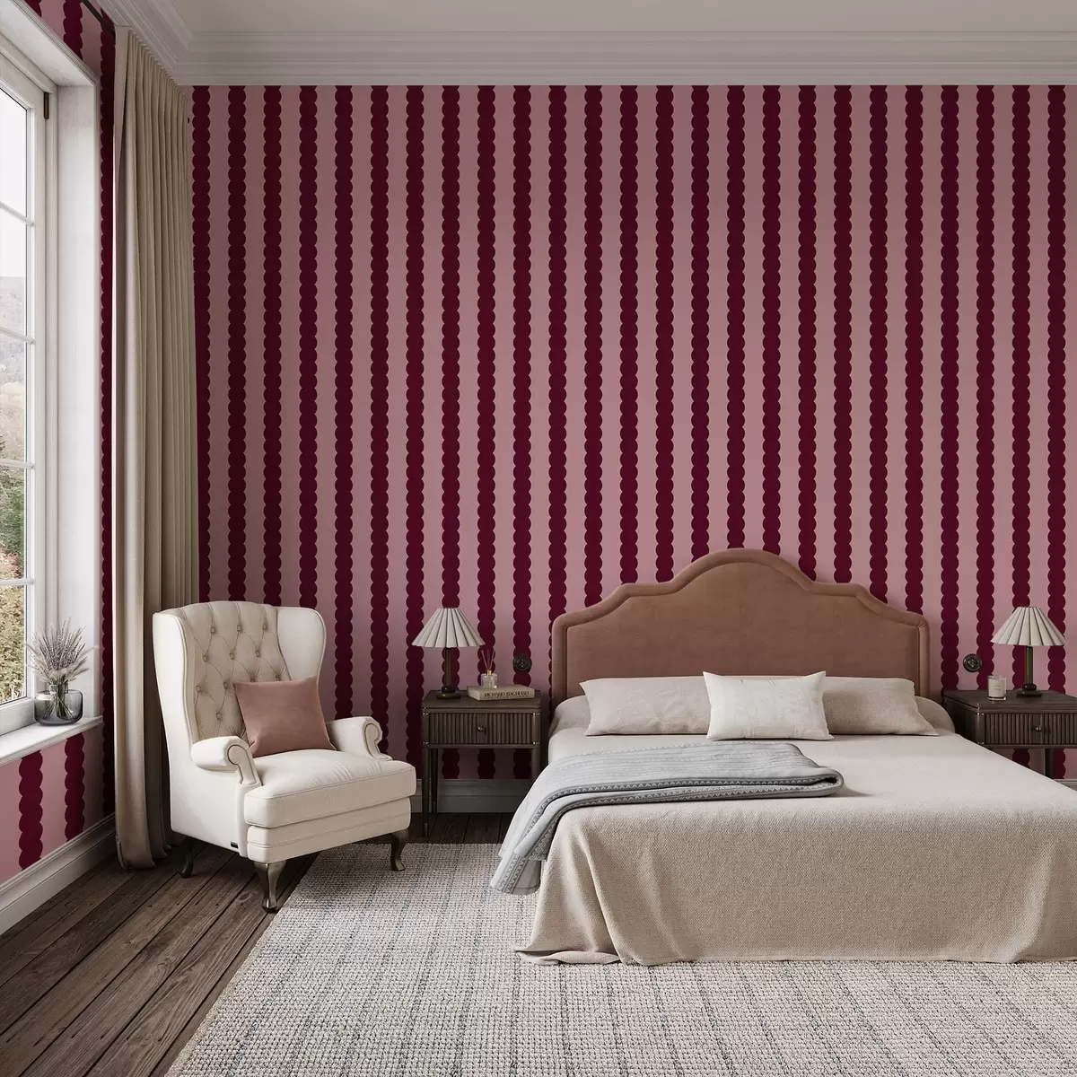 Ταπετσαρία Κυματιστές ρίγες σε μπορντό χρώμα, σε μινιμαλιστικό στυλ Nr. a01182v5