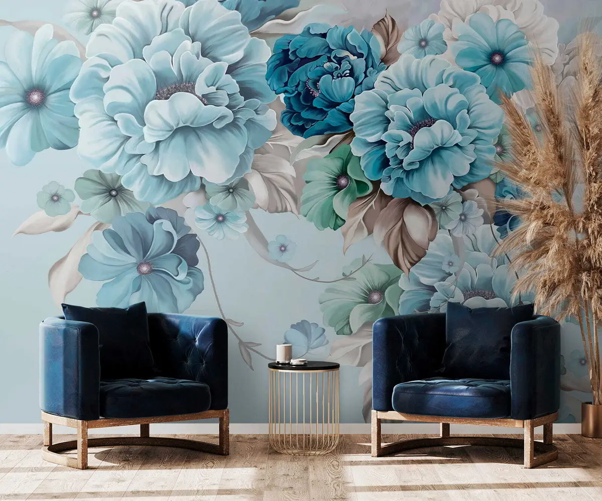 Τοιχογραφίες Λεπτά μπλε λουλούδια Nr. u59900