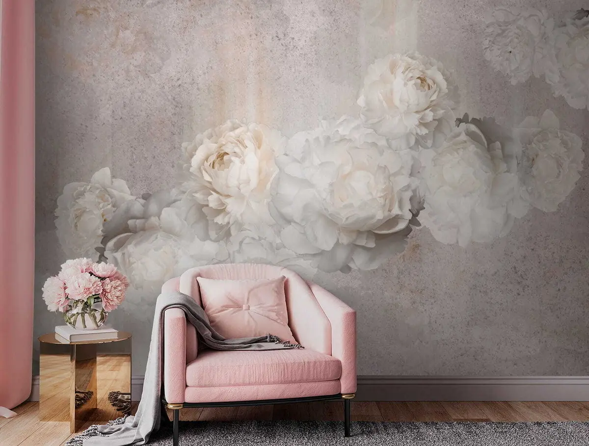 Τοιχογραφίες Vintage λουλούδια σε γκρι φόντο Nr. u61610