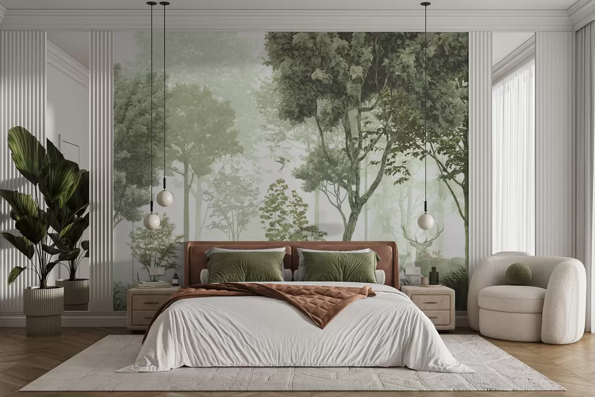 Τοιχογραφίες Μαγικό δάσος στο πράσινο Nr. u72134v2