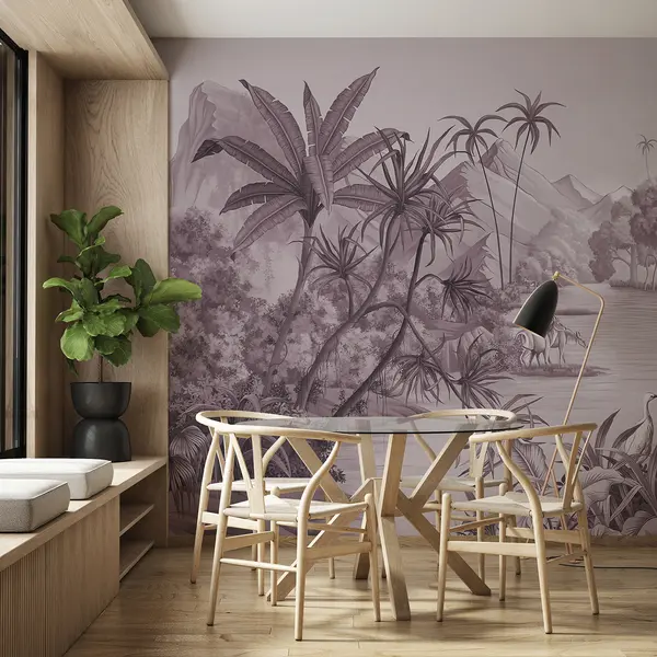 Τοιχογραφίες Μαύρο και λευκό τροπικά σε μοβ χρώματα Nr. u59040v3