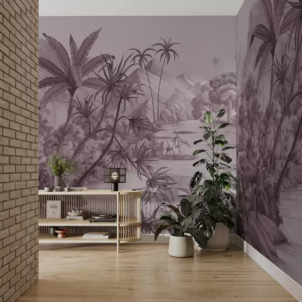 Τοιχογραφίες Μαύρο και λευκό τροπικά σε μοβ χρώματα Nr. u59040v3