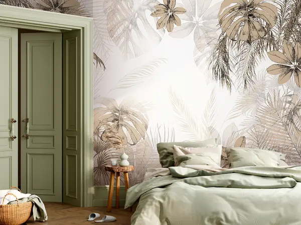 Τοιχογραφίες Τροπικά δέντρα και φύλλα στο δάσος σε λευκό φόντο Nr. u96472
