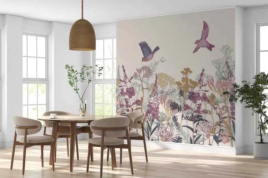 Ακουαρέλα με ημιδιαφανή φύλλα σε παστέλ χρώματα, με αποχρώσεις του ροζ, του λευκού, του μοβ και του μπλε