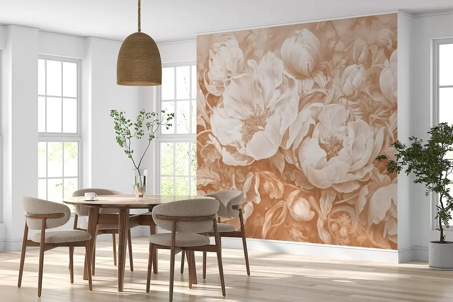 Εικόνα από μεγάλες παιώνιες σε ζεστά παστέλ χρώματα