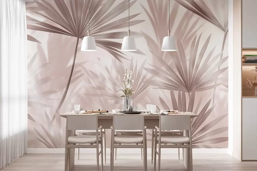 Φοινικόφυλλα, floral μοτίβο, μινιμαλισμός, τροπικά, μπεζ χρώματα