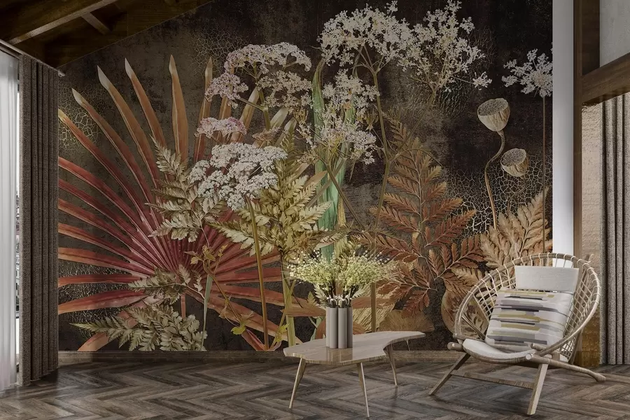 Φύλλα φοίνικα σε μαύρο φόντο τοίχου