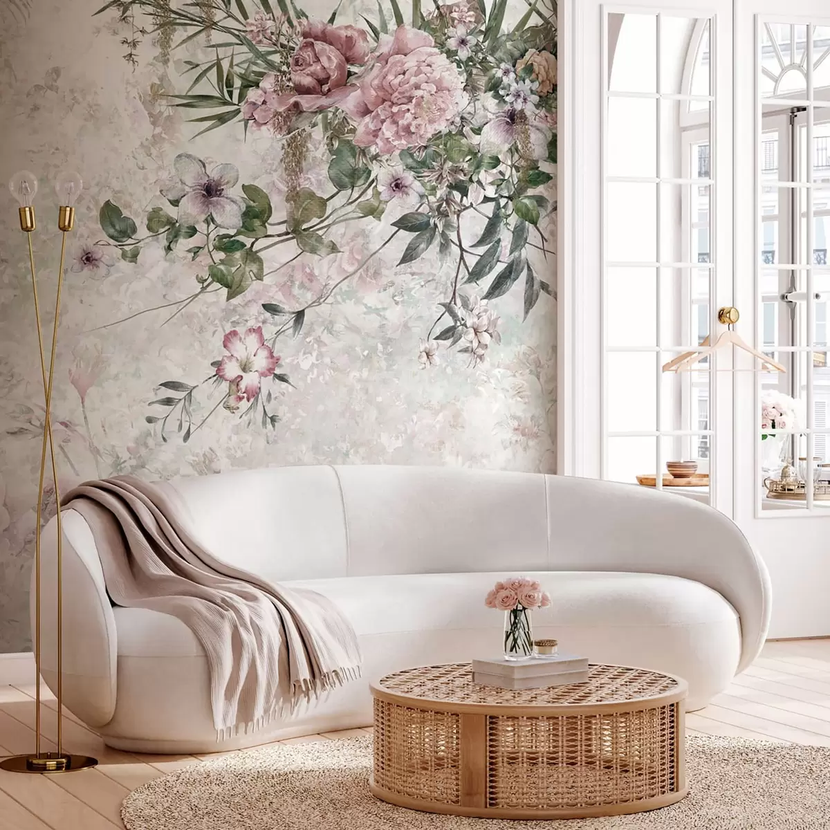 Τοιχογραφίες Vintage λουλούδια σε μαρμάρινο τοίχο Nr. u97046