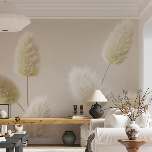 Τοιχογραφίες Μοντέρνα μπεζ αποξηραμένα λουλούδια σε boho στυλ Nr. u98432v1