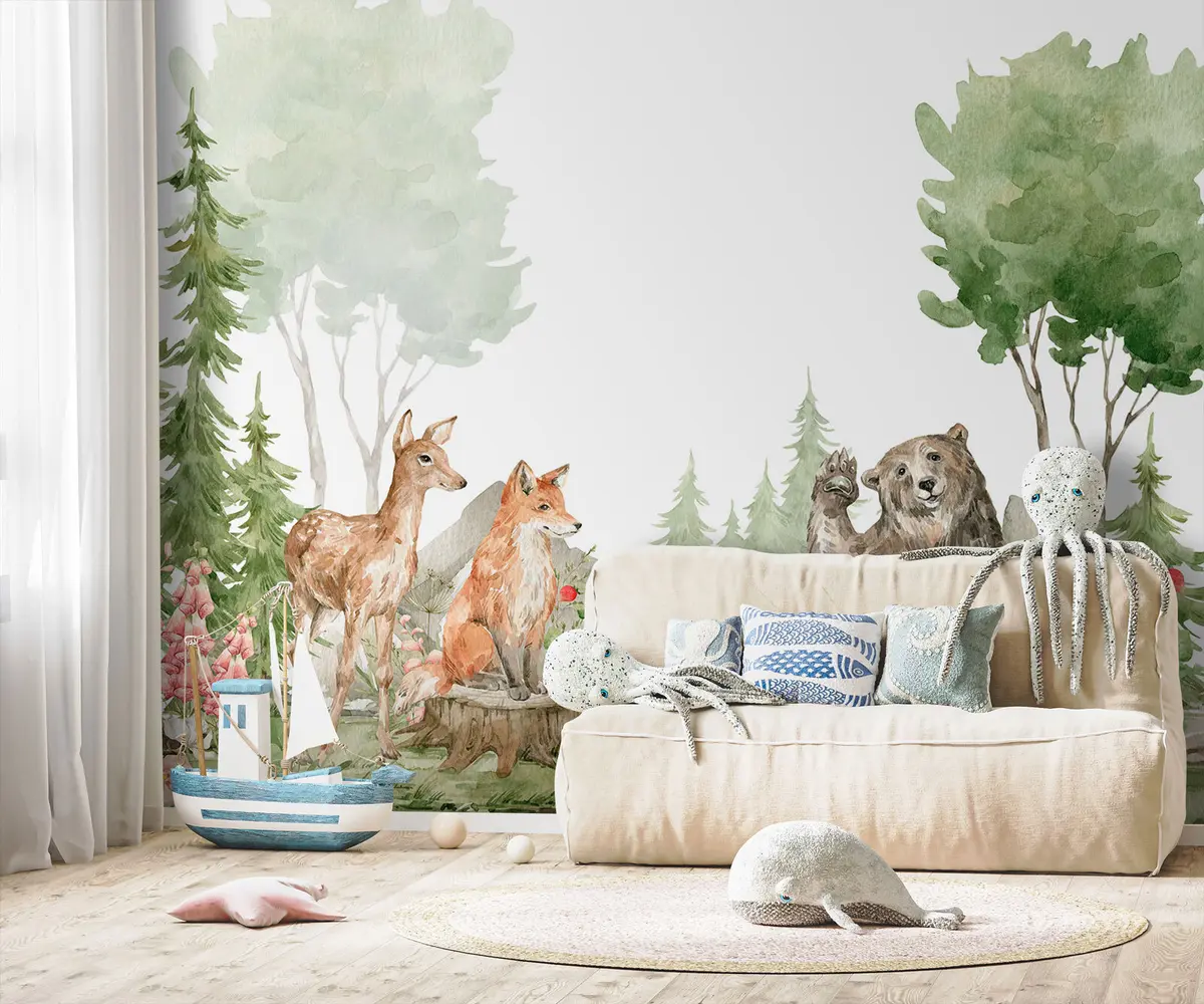 Τοιχογραφίες Σύνθεση ακουαρέλας με ζώα του δάσους και στοιχεία της φύσης Nr. u78735