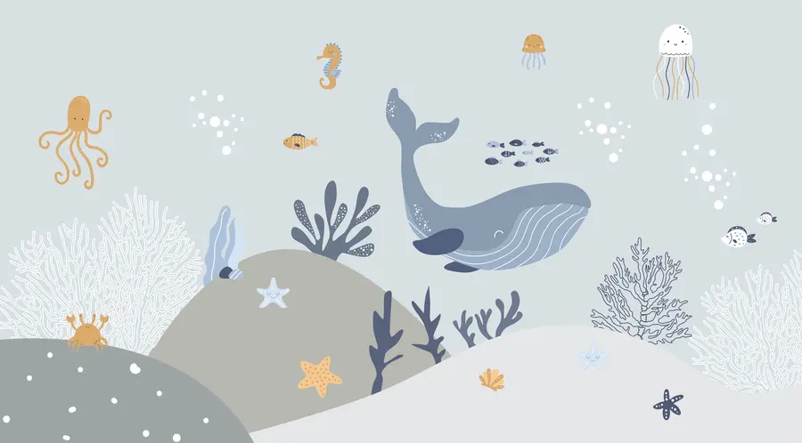 Τοιχογραφίες Υποβρύχιος κόσμος με χαριτωμένη φάλαινα Nr. u95919