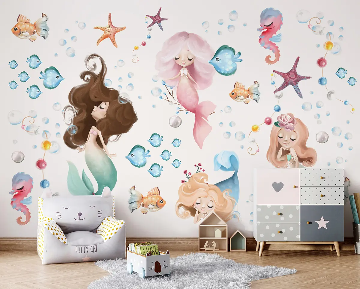 Τοιχογραφίες Ακουαρέλα γοργόνες και ψάρια Nr. u96868