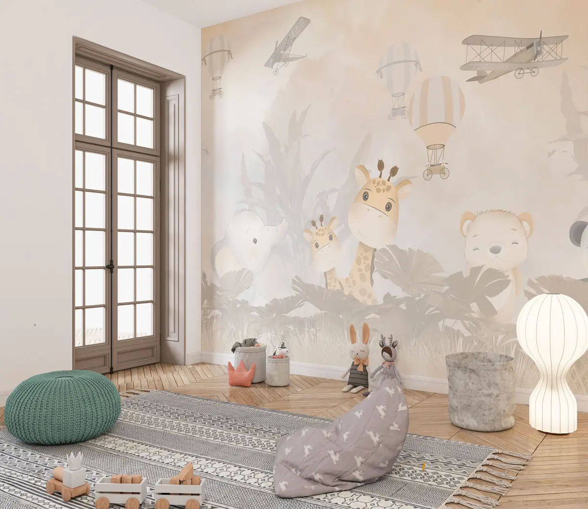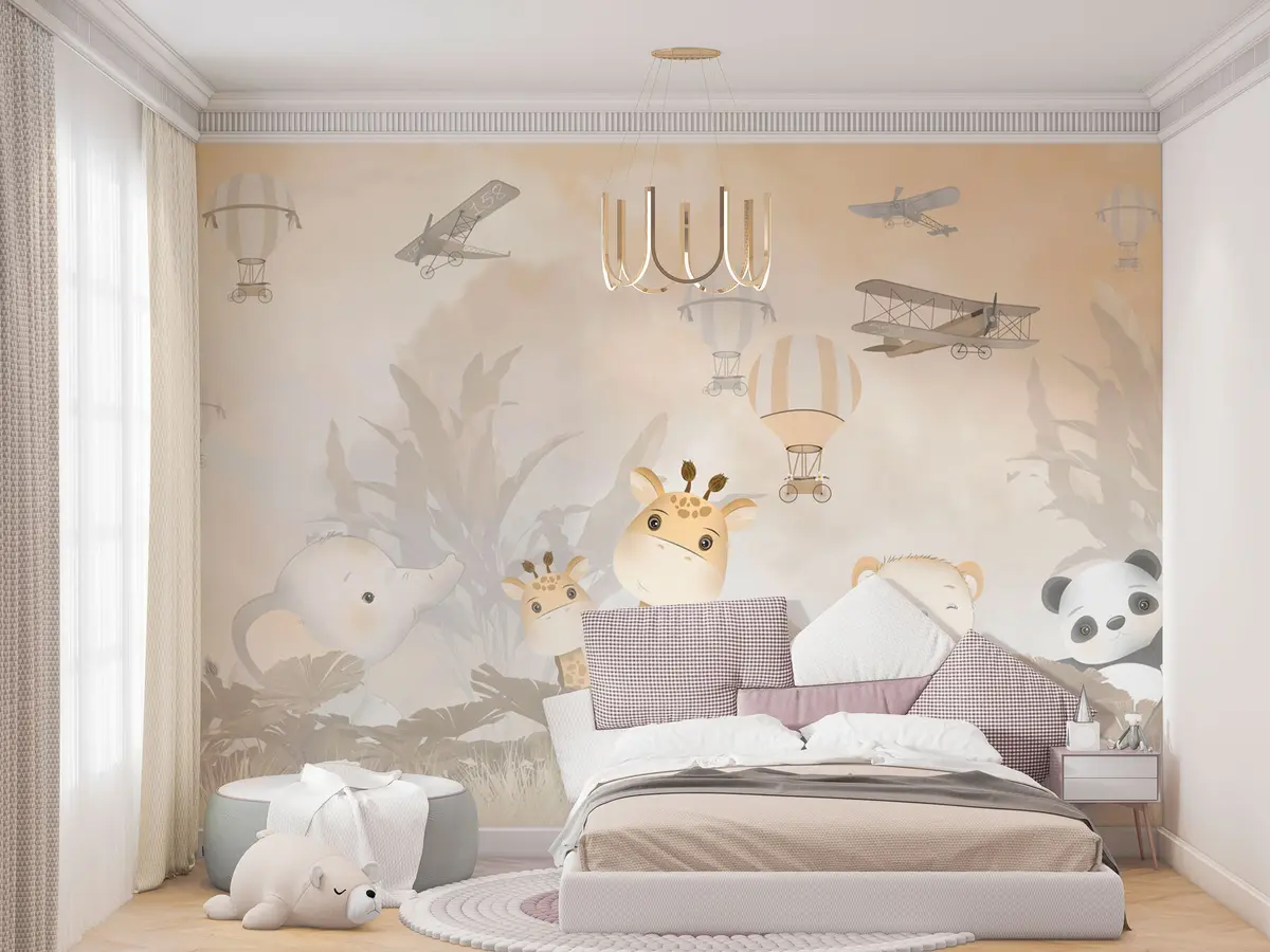 Τοιχογραφίες Χαριτωμένη ταπετσαρία ζώων για το παιδικό δωμάτιο Nr. u98166
