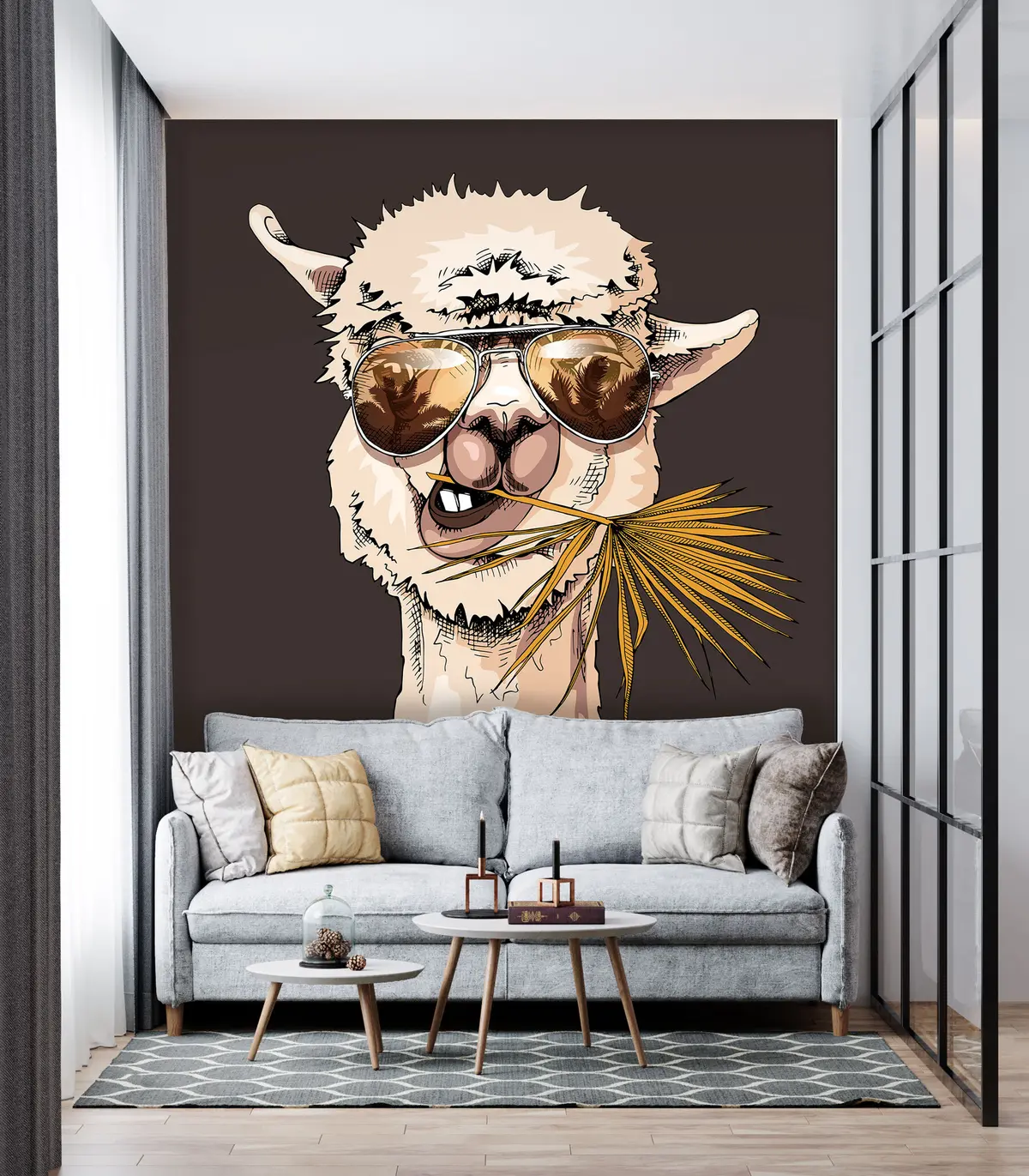 Τοιχογραφίες Πορτρέτο ενός λάμα που φοράει γυαλιά ηλίου με μια βεντάλια φοίνικα Nr. u98177v2