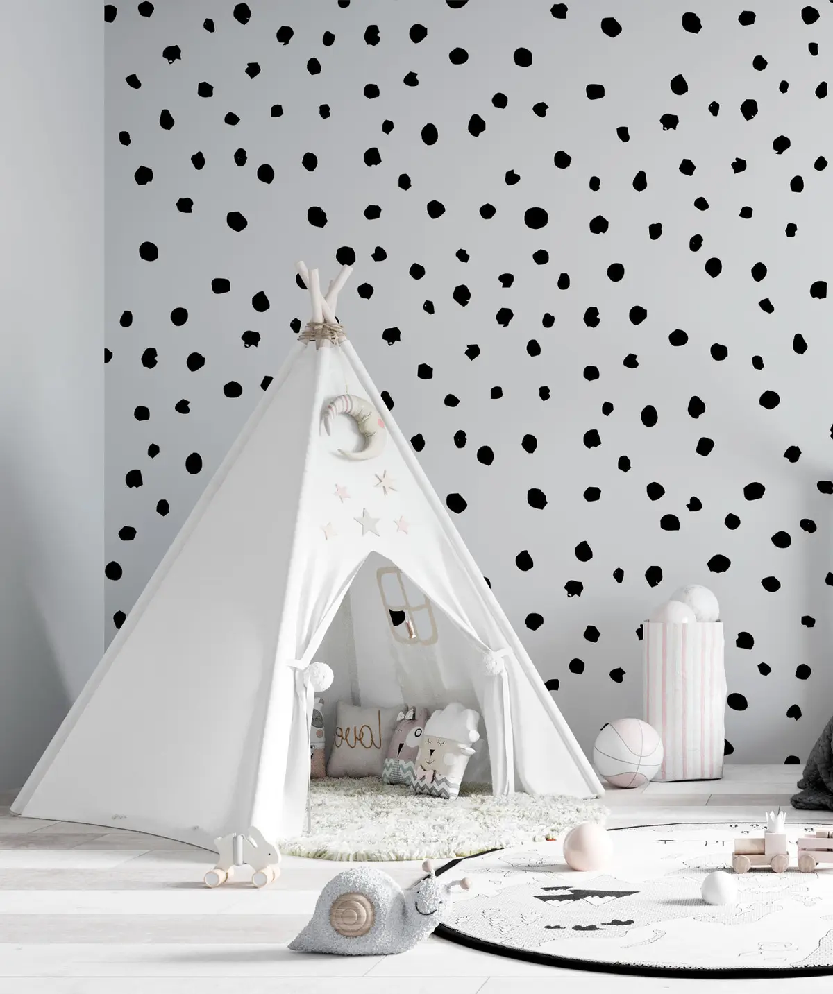 Τοιχογραφίες Κομψές μαύρες κουκκίδες σε σκανδιναβικό στυλ hygge Nr. u97351