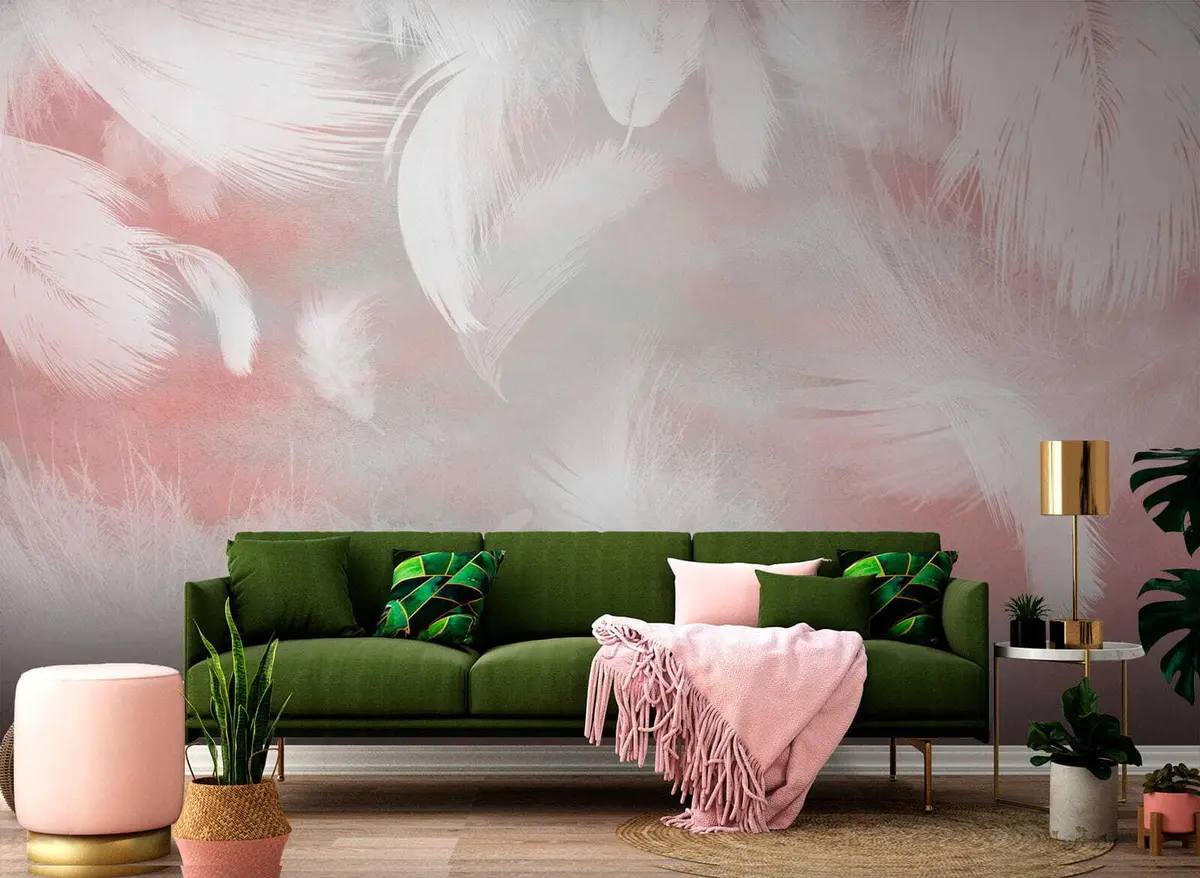 Τοιχογραφίες Λευκά φτερά σε ροζ φόντο Nr. u41755