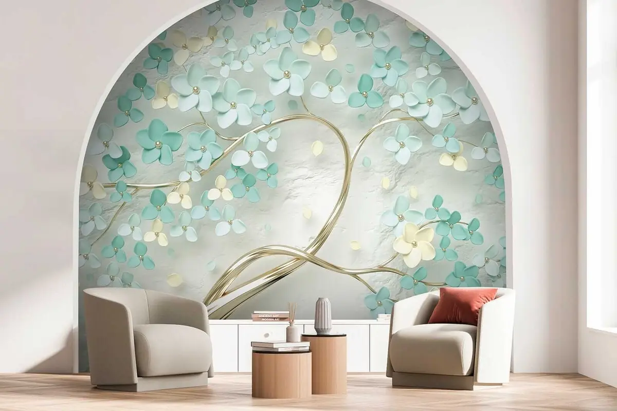 Τοιχογραφίες Δέντρο με μπλε λουλούδια Nr. u52550