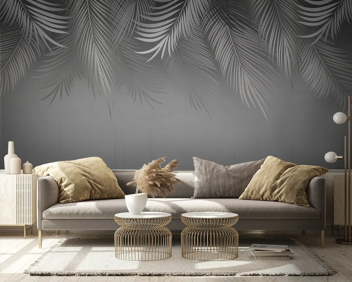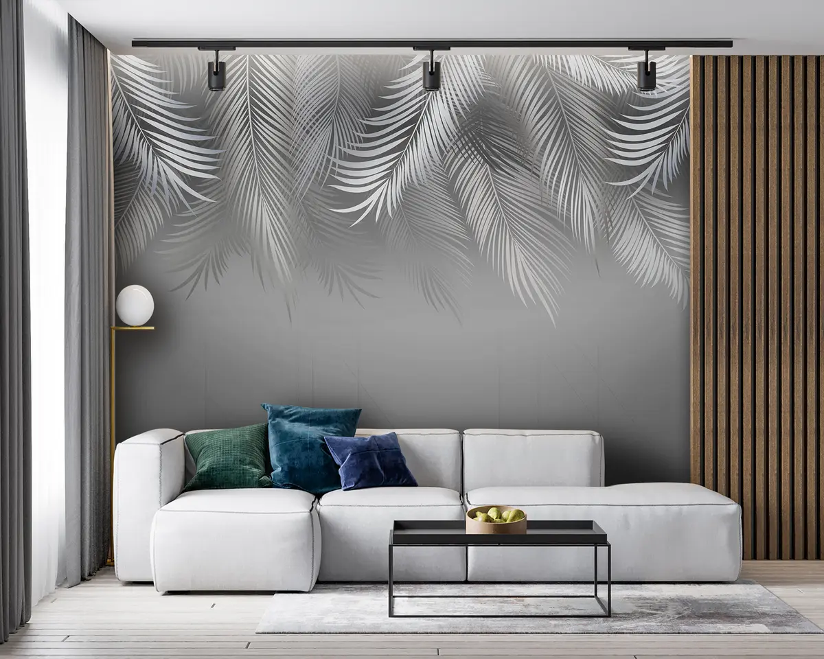 Τοιχογραφίες Τροπικά φύλλα και ημιδιαφανές γεωμετρικό φόντο Nr. u94962