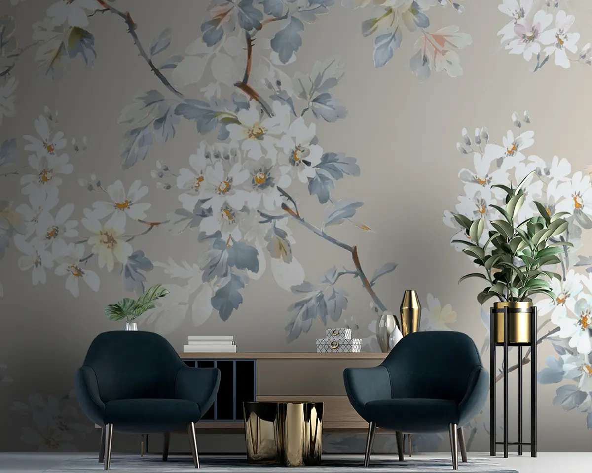 Τοιχογραφίες Ζωγραφισμένα στο χέρι λουλούδια και πεταλούδες με ακουαρέλες Nr. u97114