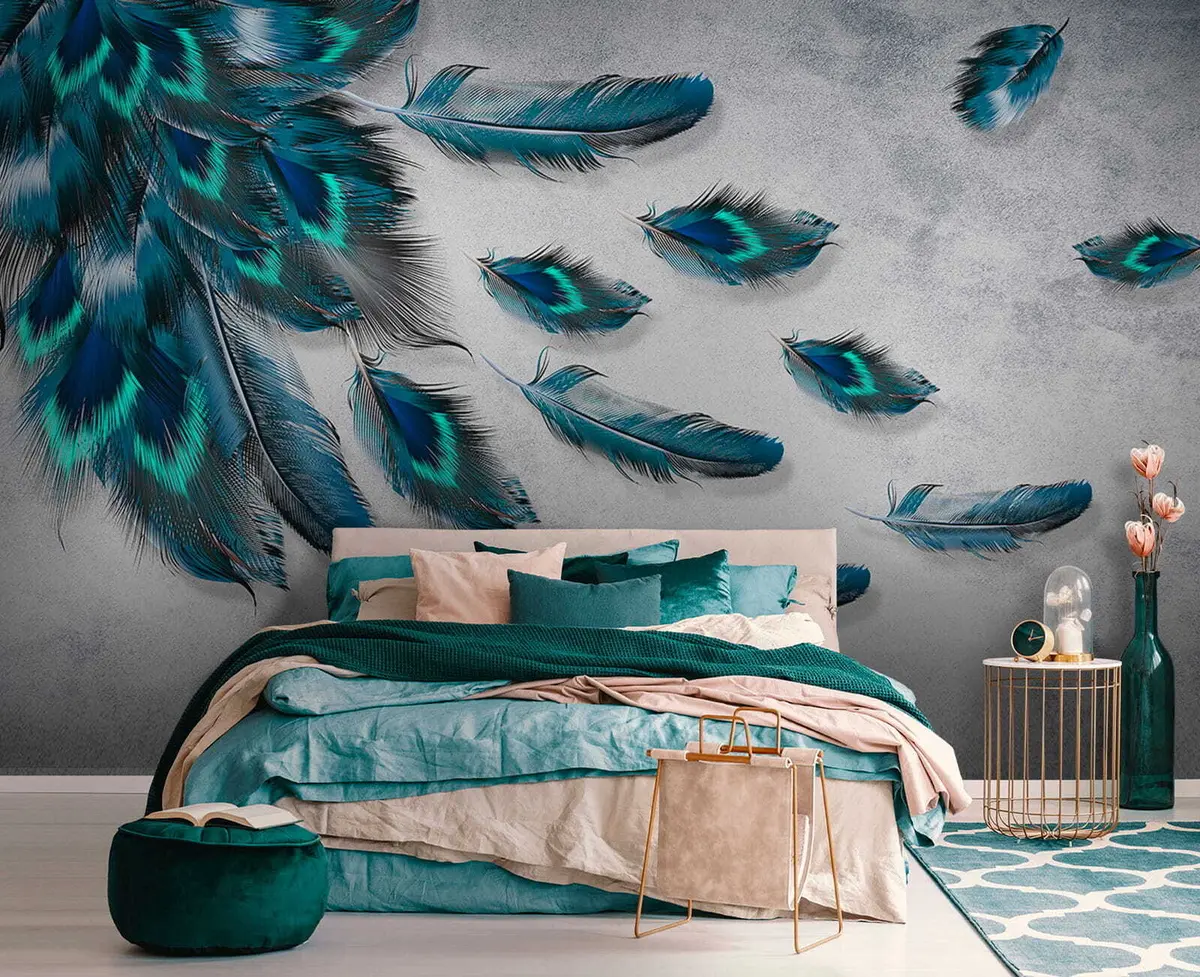 Τοιχογραφίες Φτερά παγωνιού στο φόντο του τσιμεντένιου τοίχου Nr. u29836