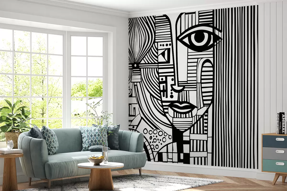 Τοιχογραφίες Αφηρημένο ασπρόμαυρο πρόσωπο Nr. u98714