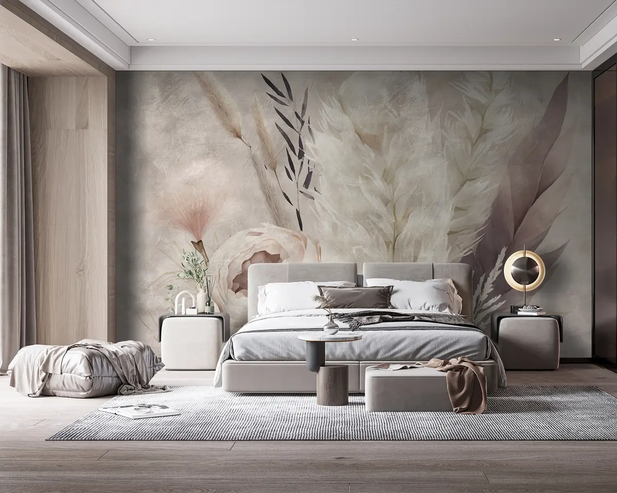 Τοιχογραφίες Σύνθεση από φτερά και λουλούδια Nr. u95403