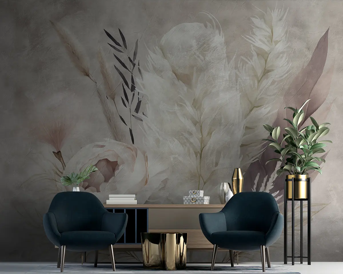 Τοιχογραφίες Σύνθεση από φτερά και λουλούδια Nr. u95403