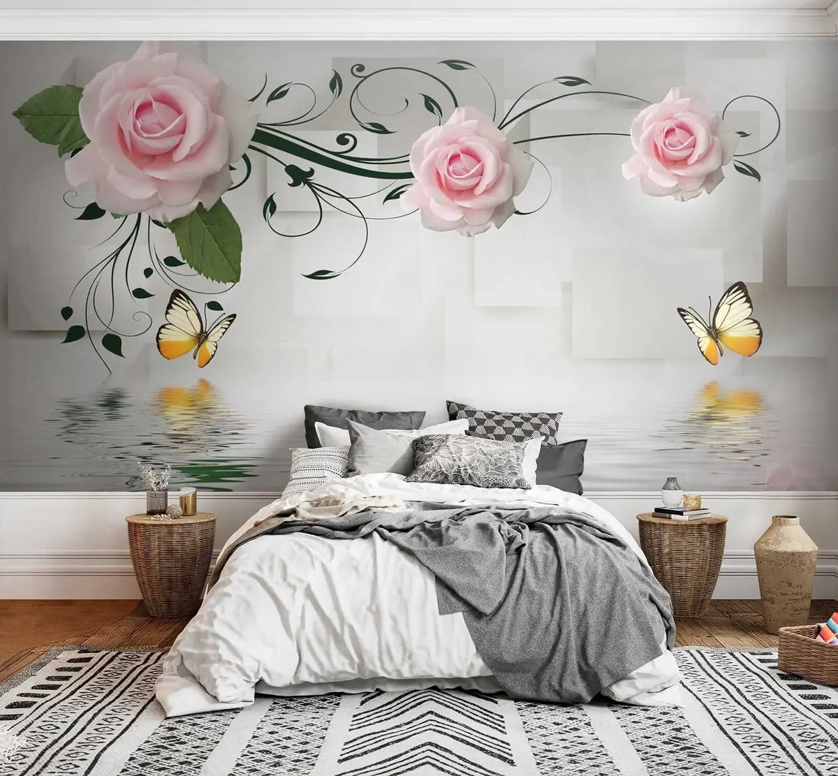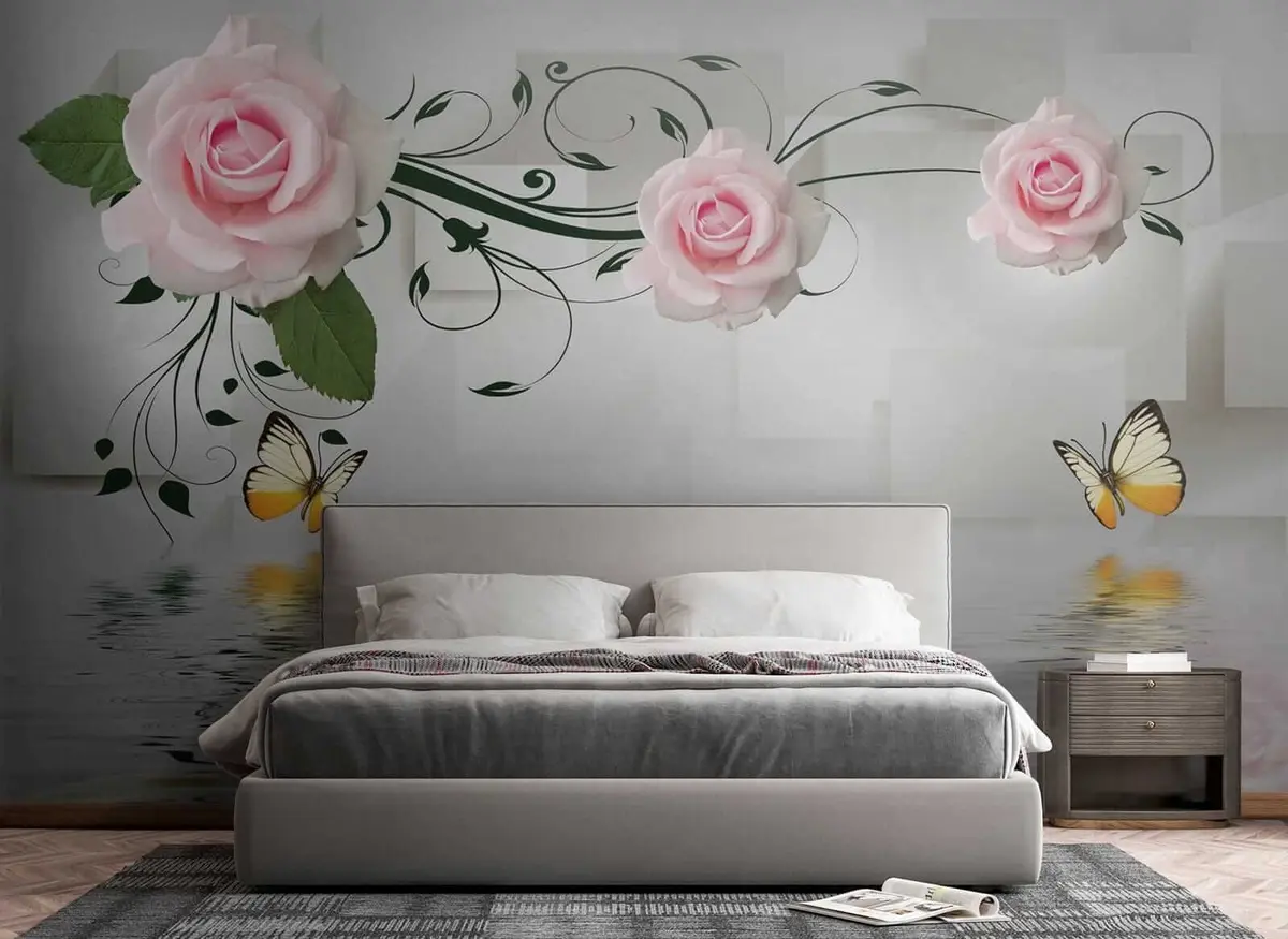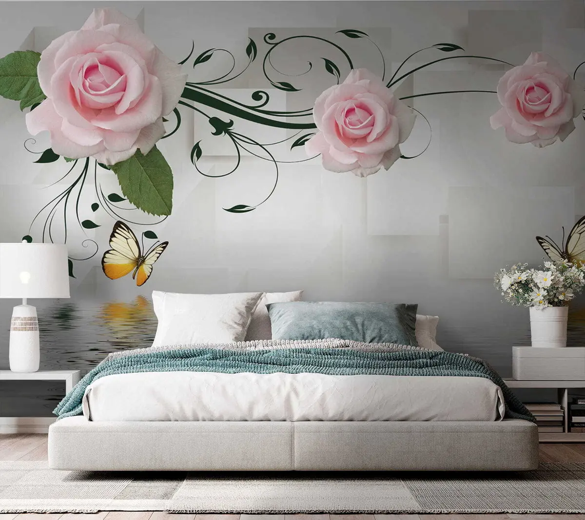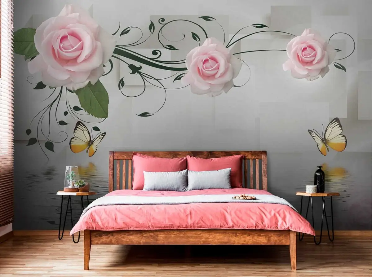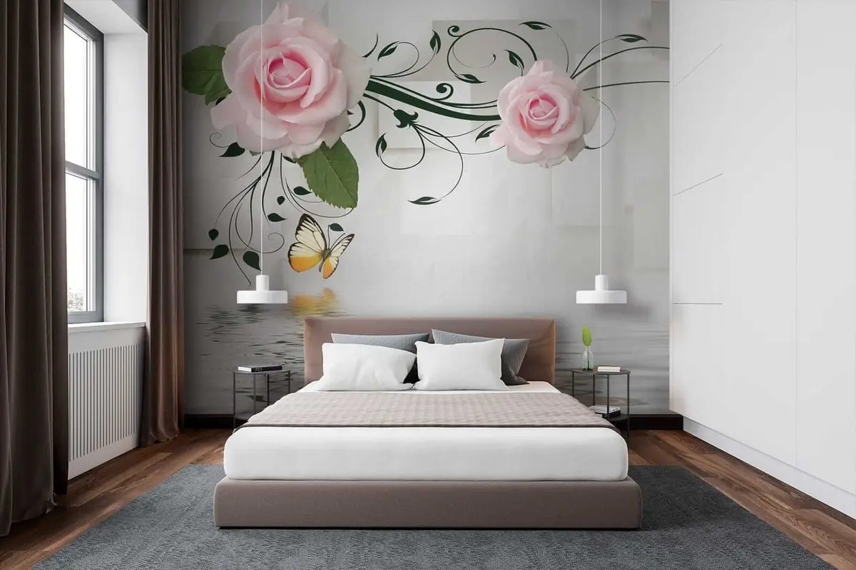 Τοιχογραφίες Ροζ τριαντάφυλλα με μπούκλες Nr. u38141
