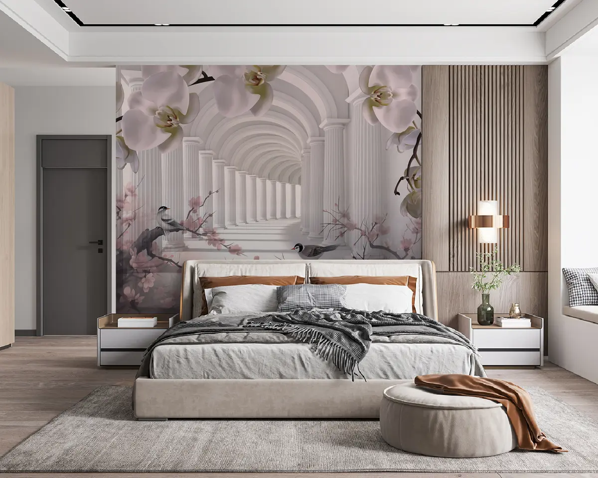 Τοιχογραφίες Όμορφη σήραγγα με πουλιά και ορχιδέες Nr. u94513