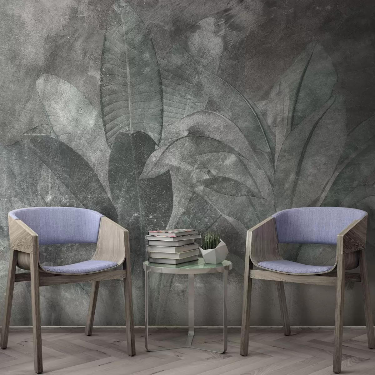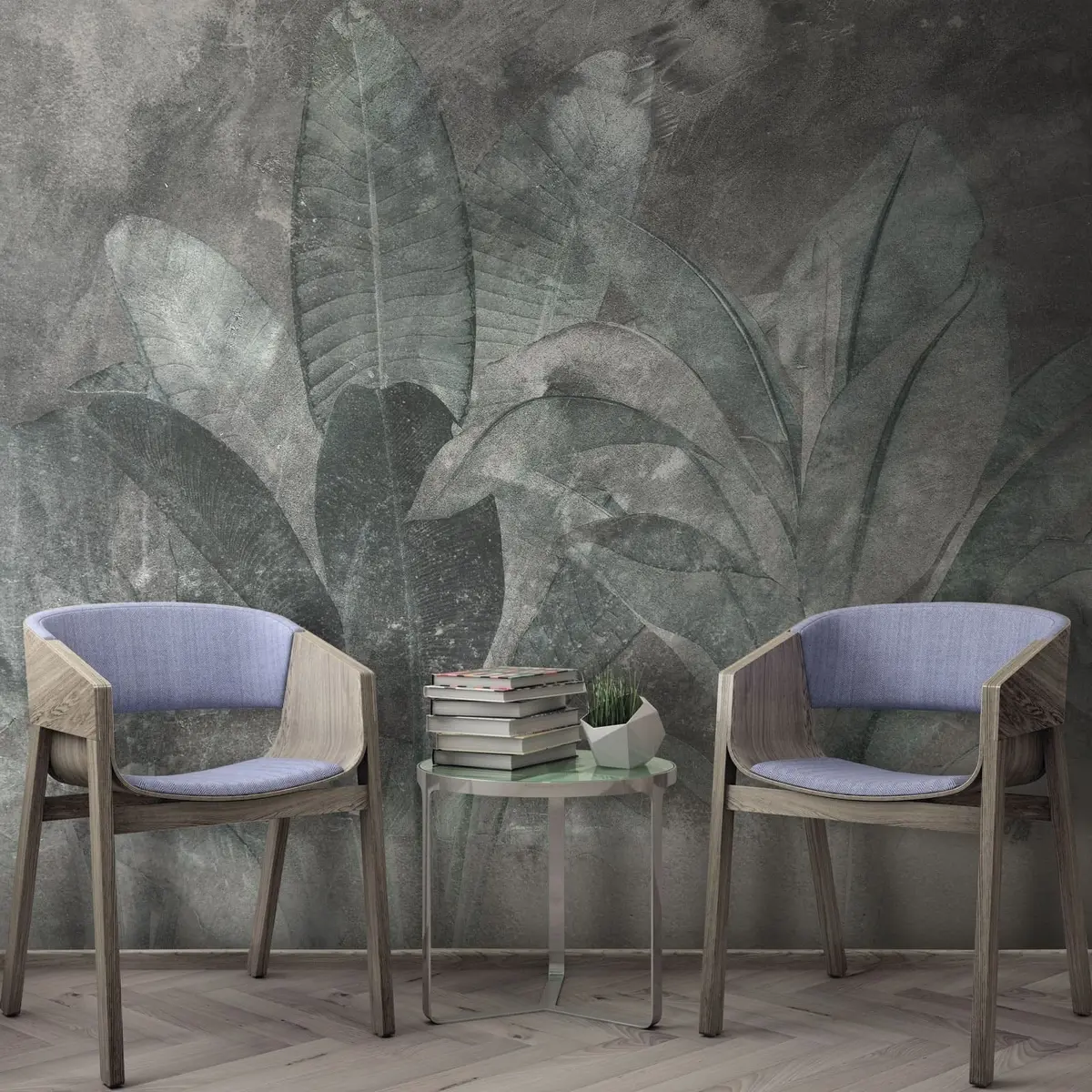 Τοιχογραφίες Φύλλα μπανάνας σε πέτρινο φόντο Nr. u73884