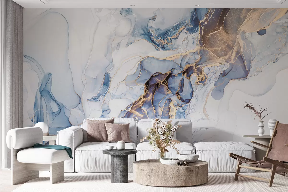 Τοιχογραφίες Λευκό μπλε μάρμαρο, ρευστό Nr. u70767