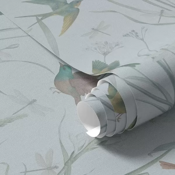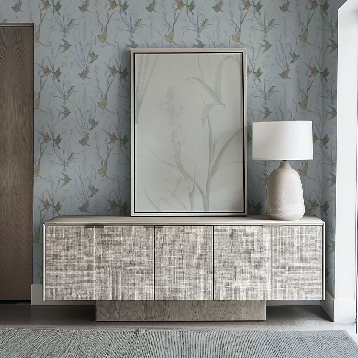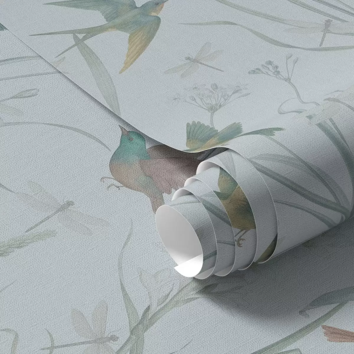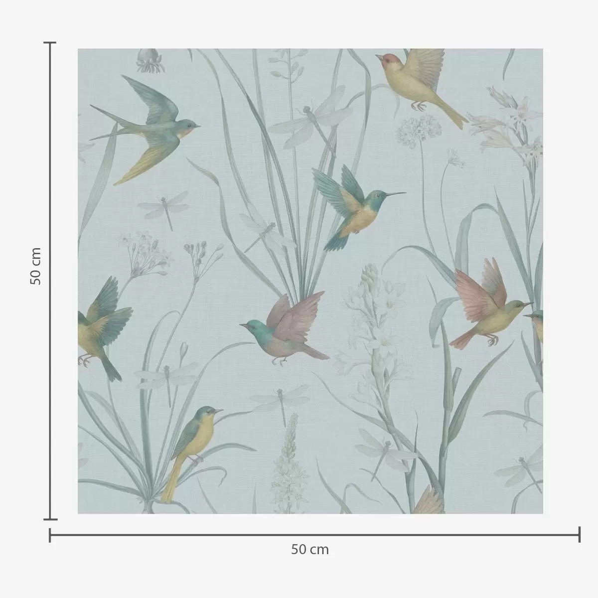 Ταπετσαρία Πουλιά ανάμεσα στα χόρτα του λιβαδιού σε γκρι-μπλε φόντο Nr. a00776