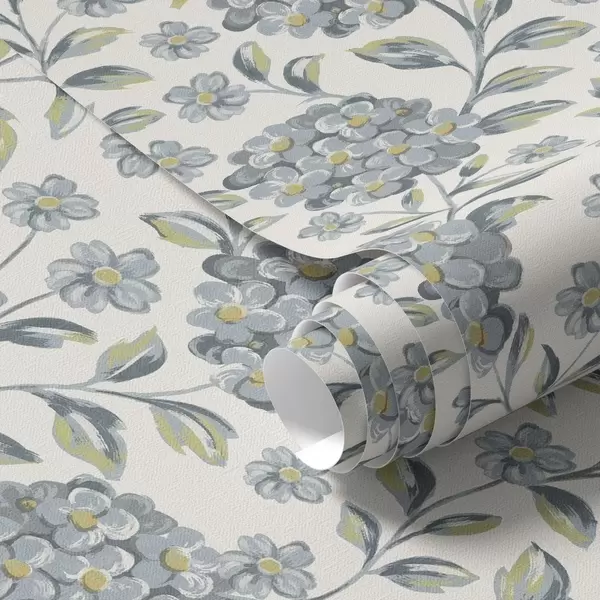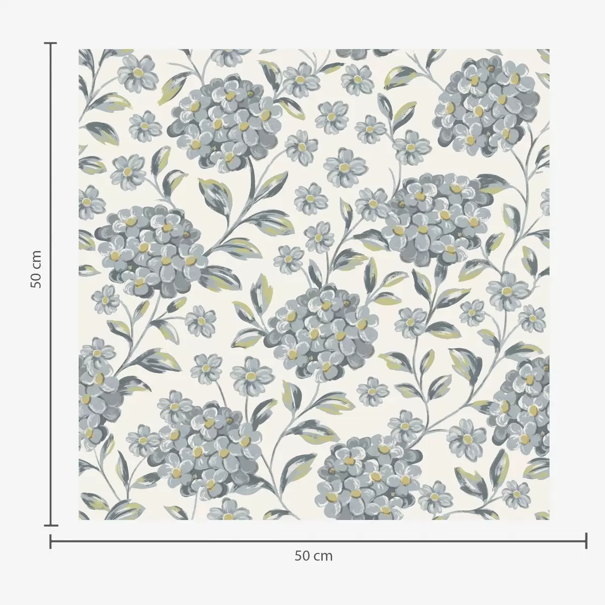 Ταπετσαρία Θαμνώδη άνθη και φύλλα σε γκρι-μπλε παλέτα Nr. a00778