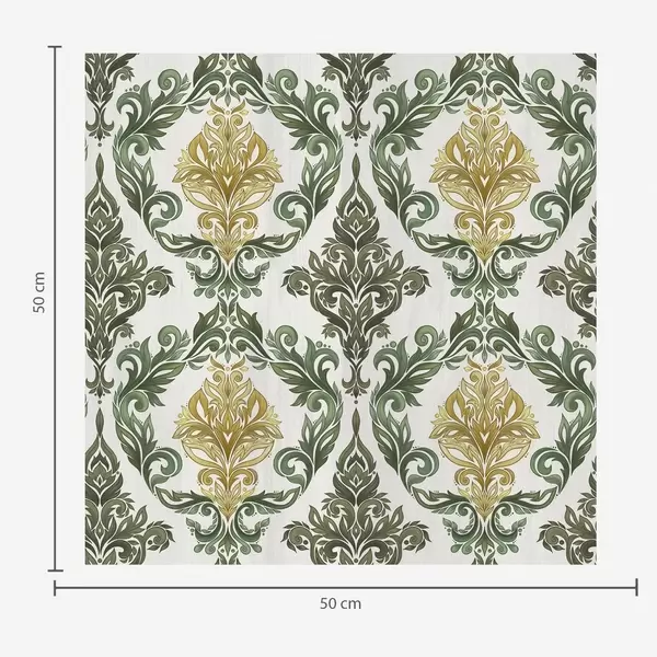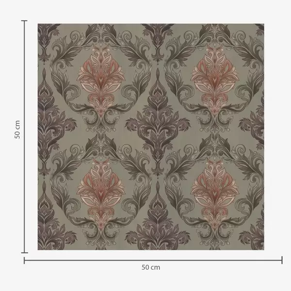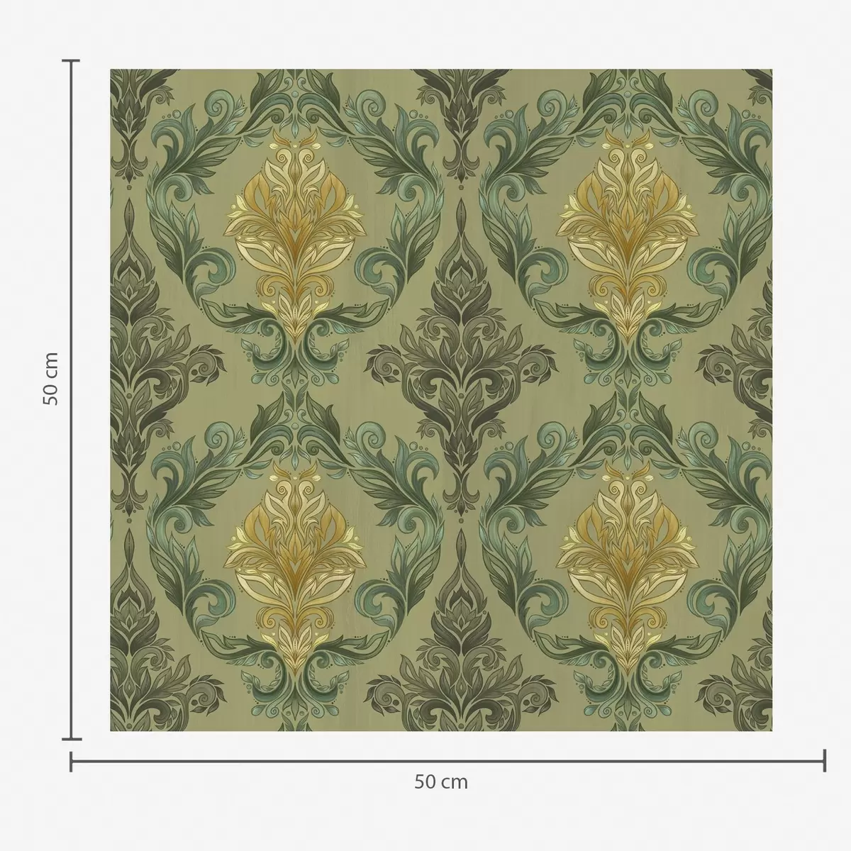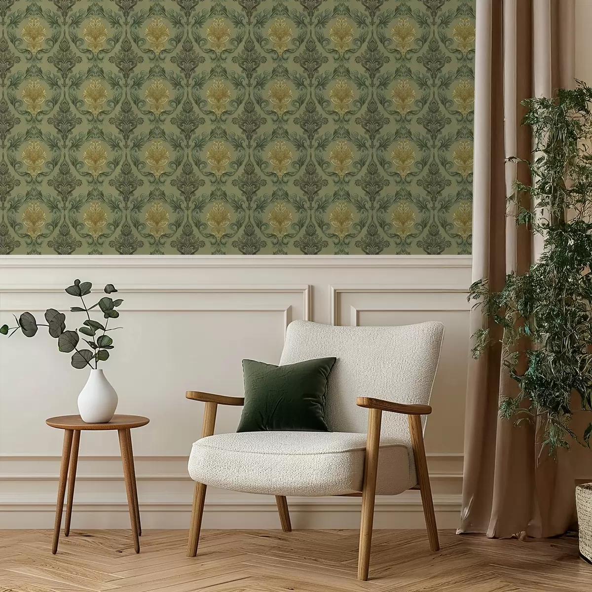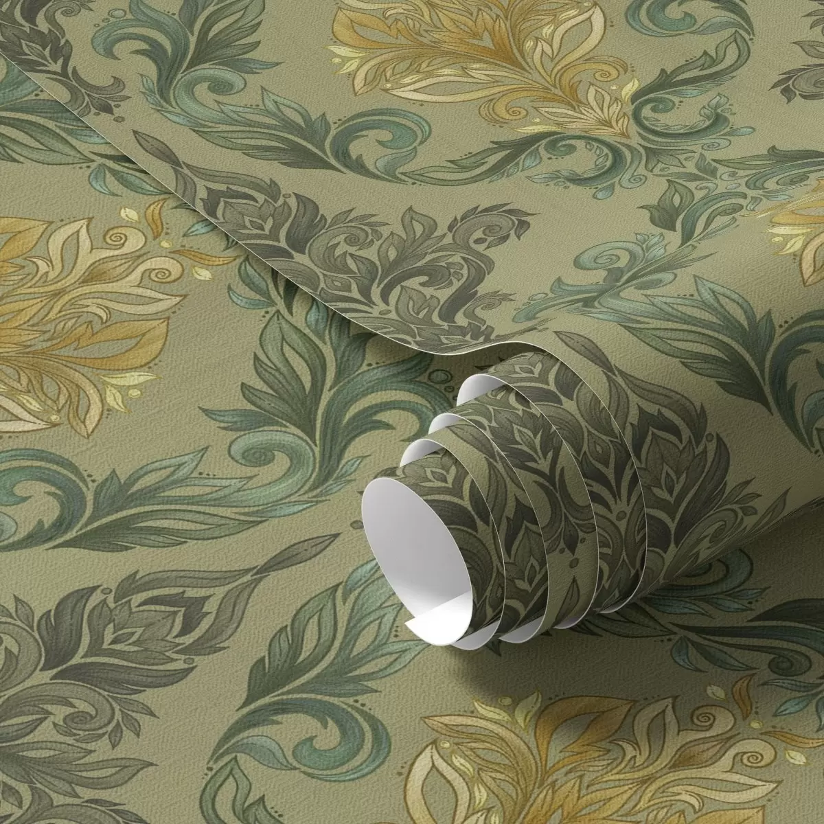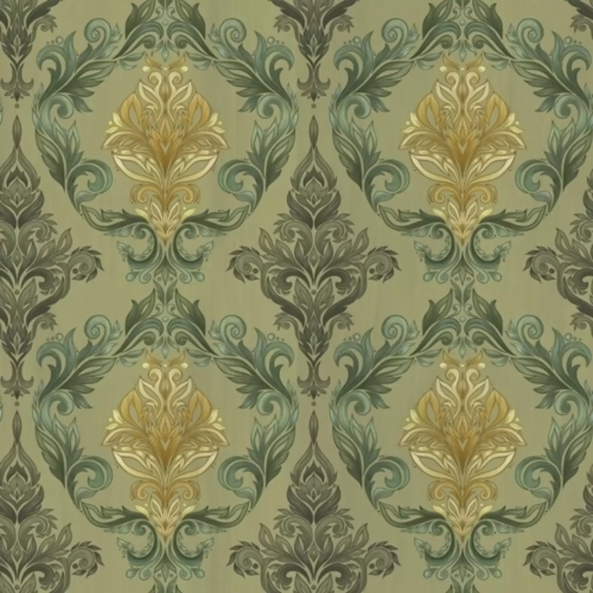 Τοιχογραφίες Δαμασκηνό με φυτικά σπειροειδή μοτίβα, παλέτα χρωμάτων ελιάς-ώχρας Nr. a00828