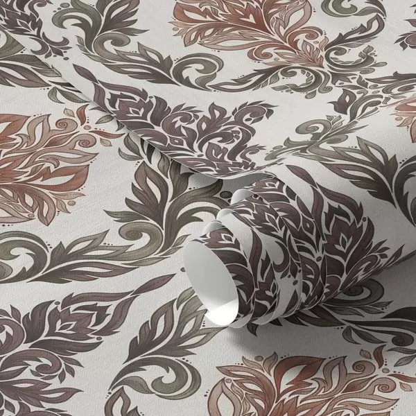 Ταπετσαρία Δαμασκηνό με χάλκινα-καφέ αποχρώσεις σε ανοιχτό φόντο Nr. a00828v4