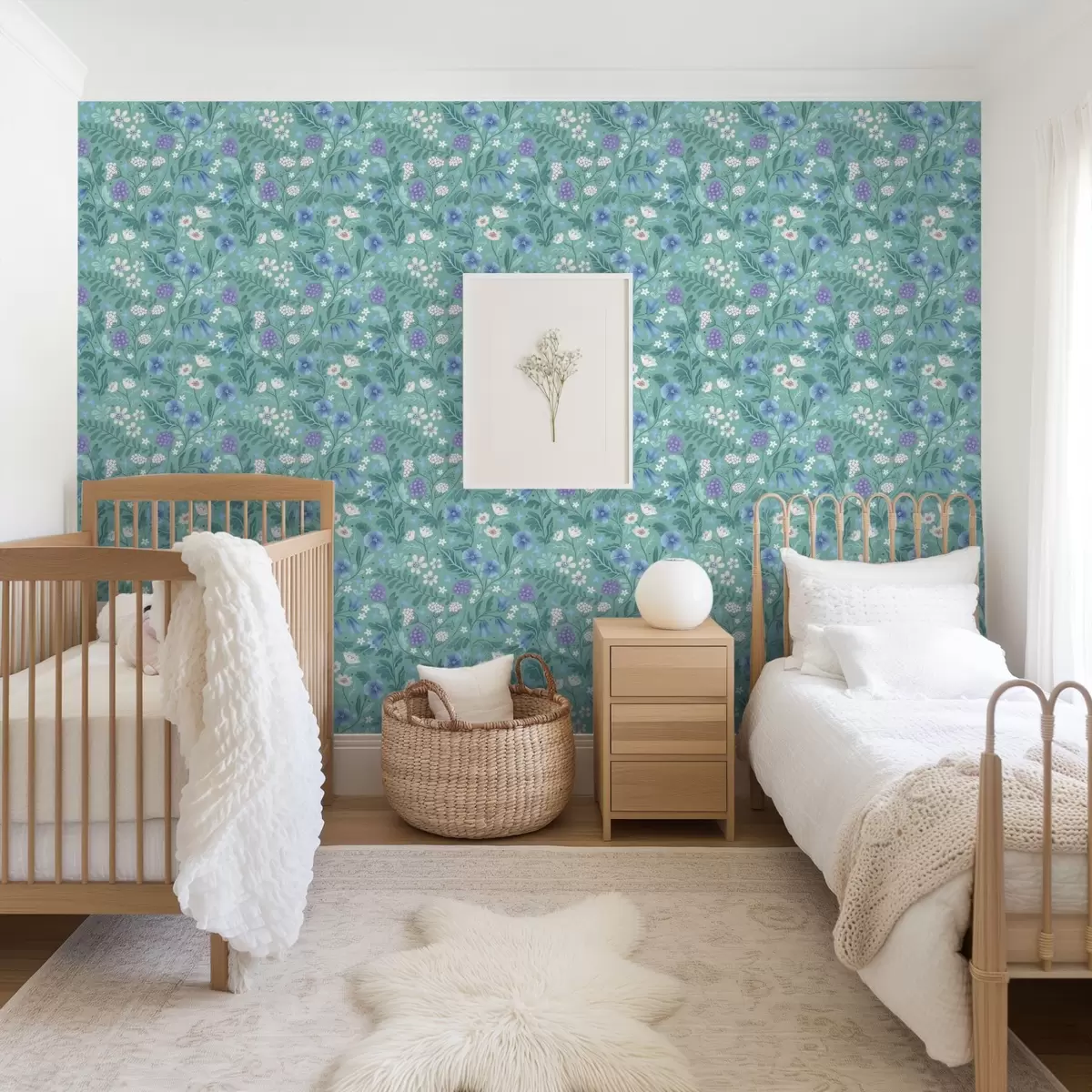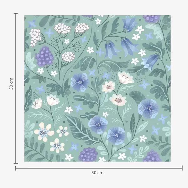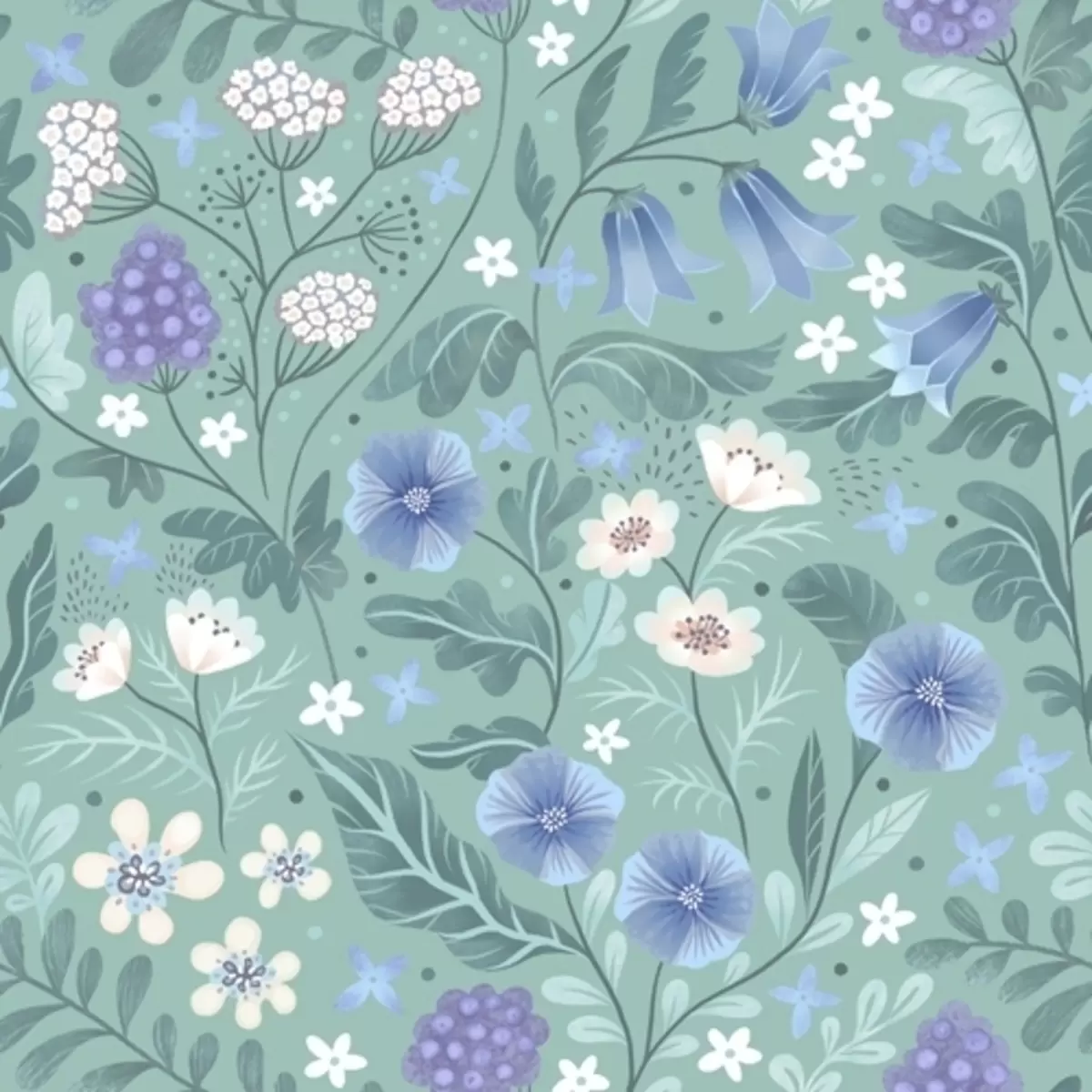 Τοιχογραφίες Άγρια λουλούδια και μούρα σε απαλό φόντο μέντας Nr. a00849