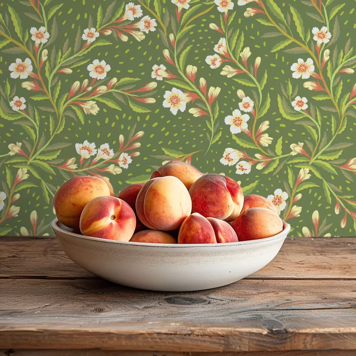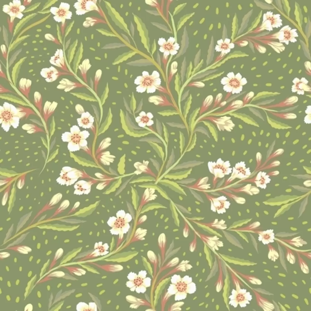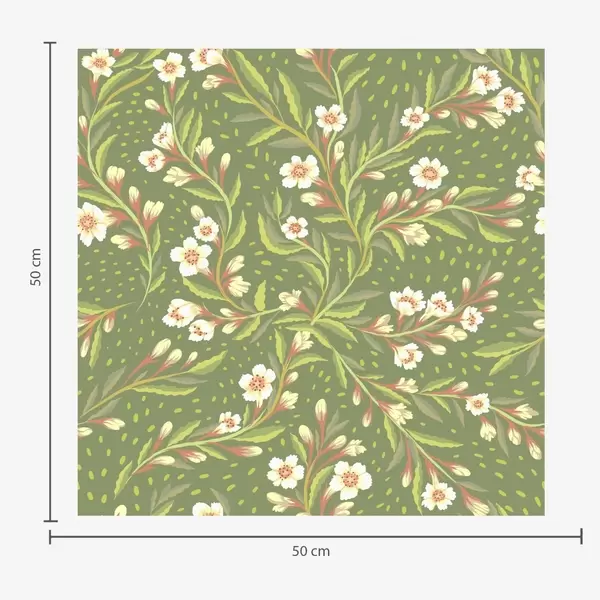 Τοιχογραφίες Κλαδιά με κρεμ λουλούδια σε φόντο ελιάς Nr. a00850