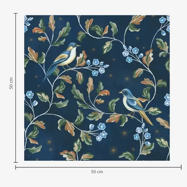 Τοιχογραφίες Τσίλιες σε κλαδιά, μπλε νυχτερινό φόντο με σπινθήρες Nr. a00858