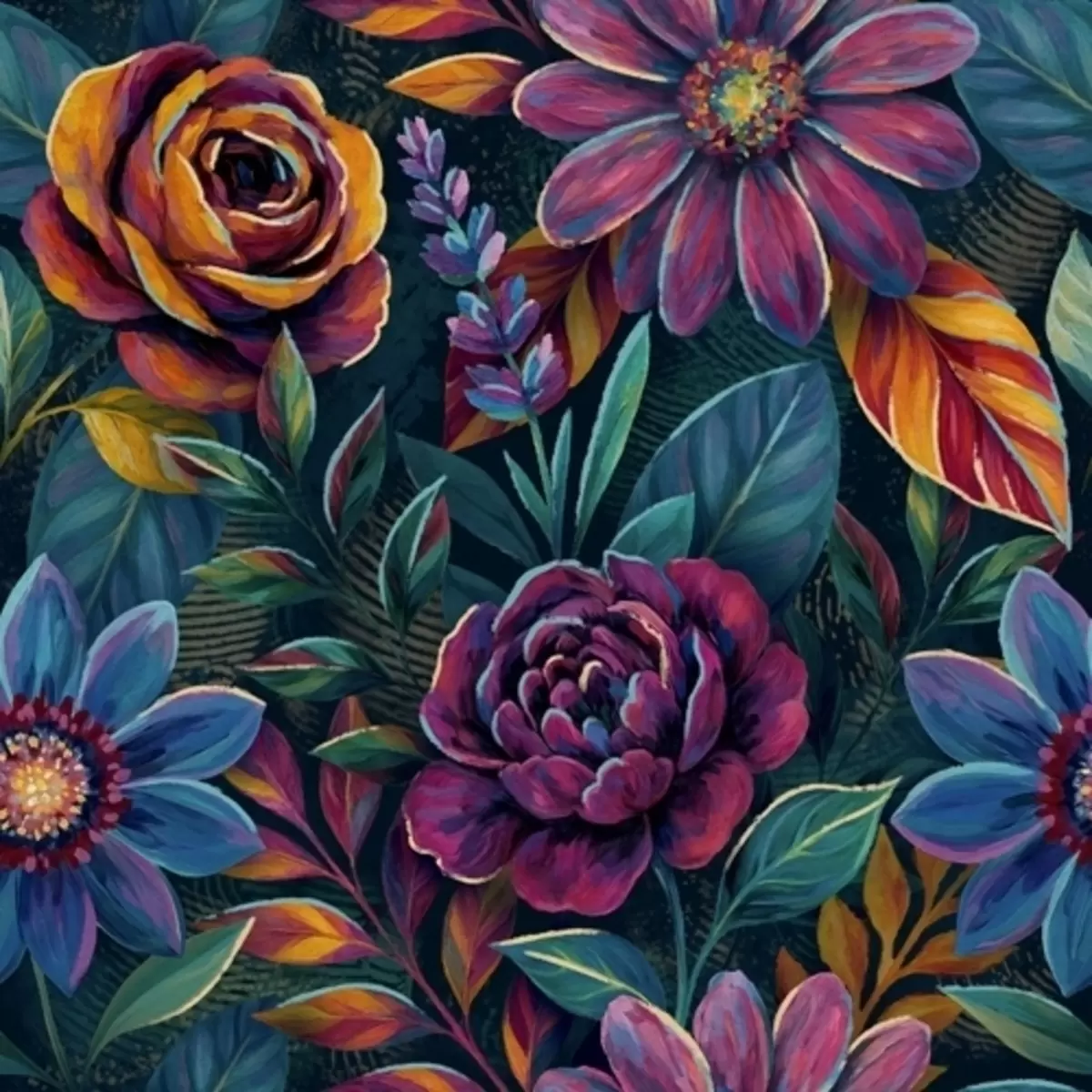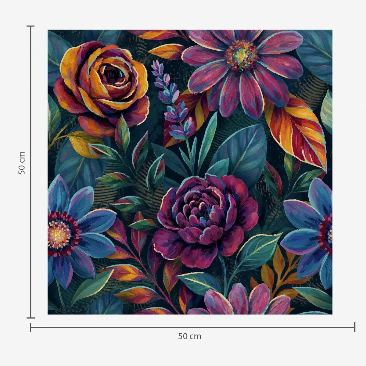 Τοιχογραφίες Ζωηρά λουλούδια σε χρώματα κοσμημάτων πάνω σε βαθύ μπλε Nr. a00871