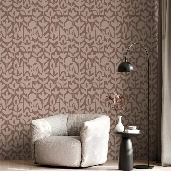 Τοιχογραφίες Γεωμετρικά floral σχέδια σε χρώματα τερακότα και κρεμ Nr. a00875v2