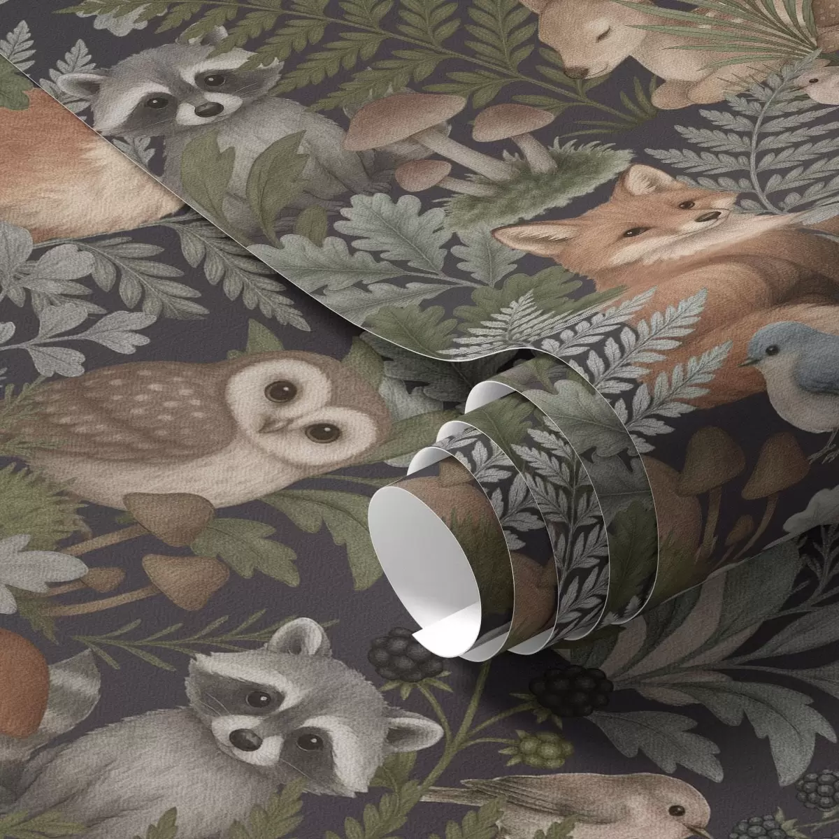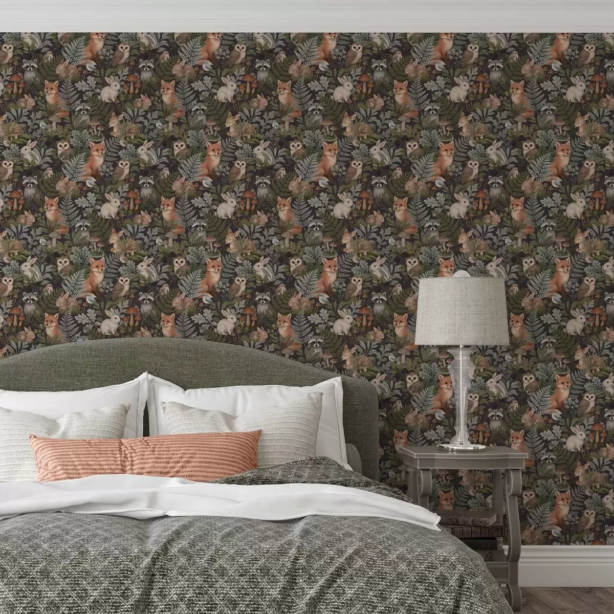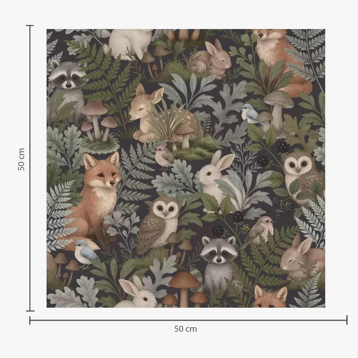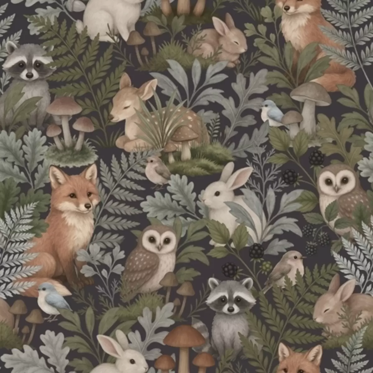 Τοιχογραφίες Δασικά ζώα και φτέρες σε βαθύ κάρβουνο Nr. a00880