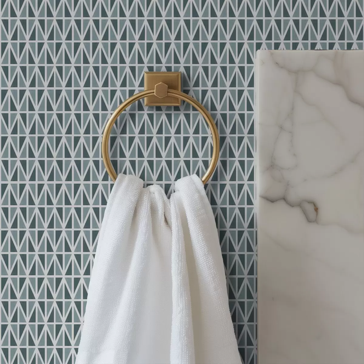 Τοιχογραφίες Λεπτό λευκό διαμάντι πλέγμα πάνω από απαλό γαλαζοπράσινο Nr. a00903