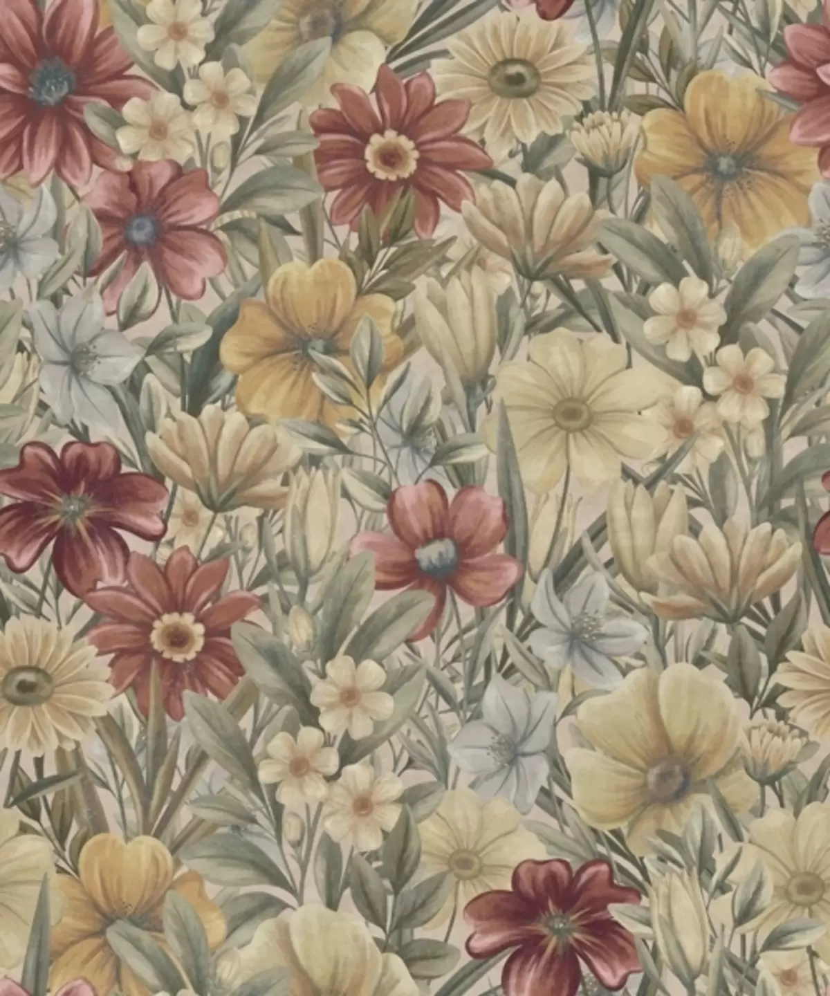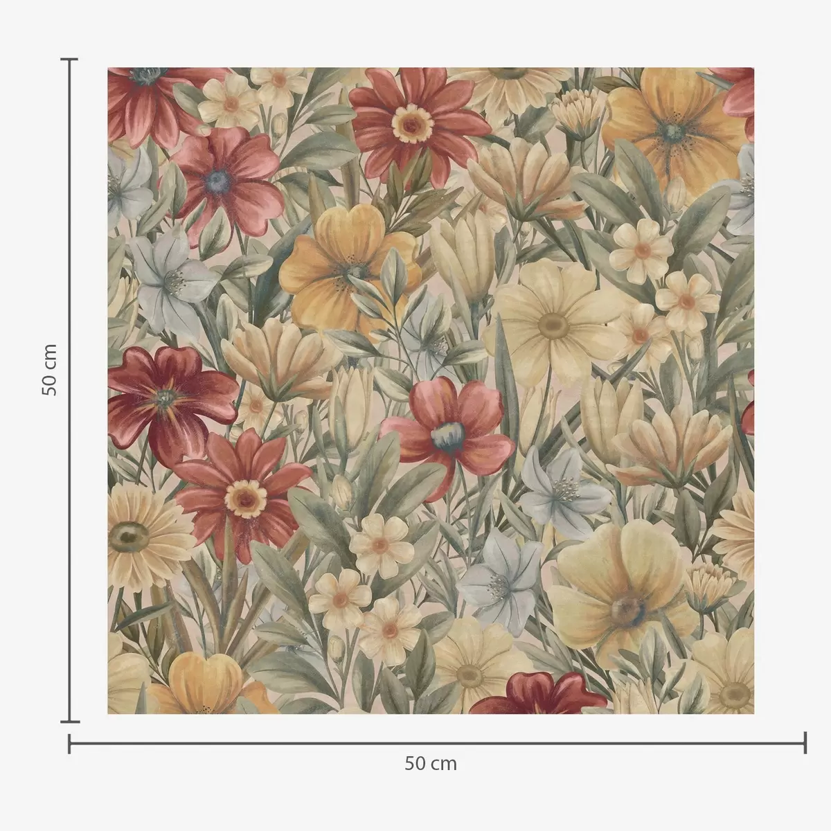 Τοιχογραφίες Vintage λουλούδια λιβαδιού σε ζεστά κίτρινα, κόκκινα και φασκόμηλα χρώματα Nr. a00906