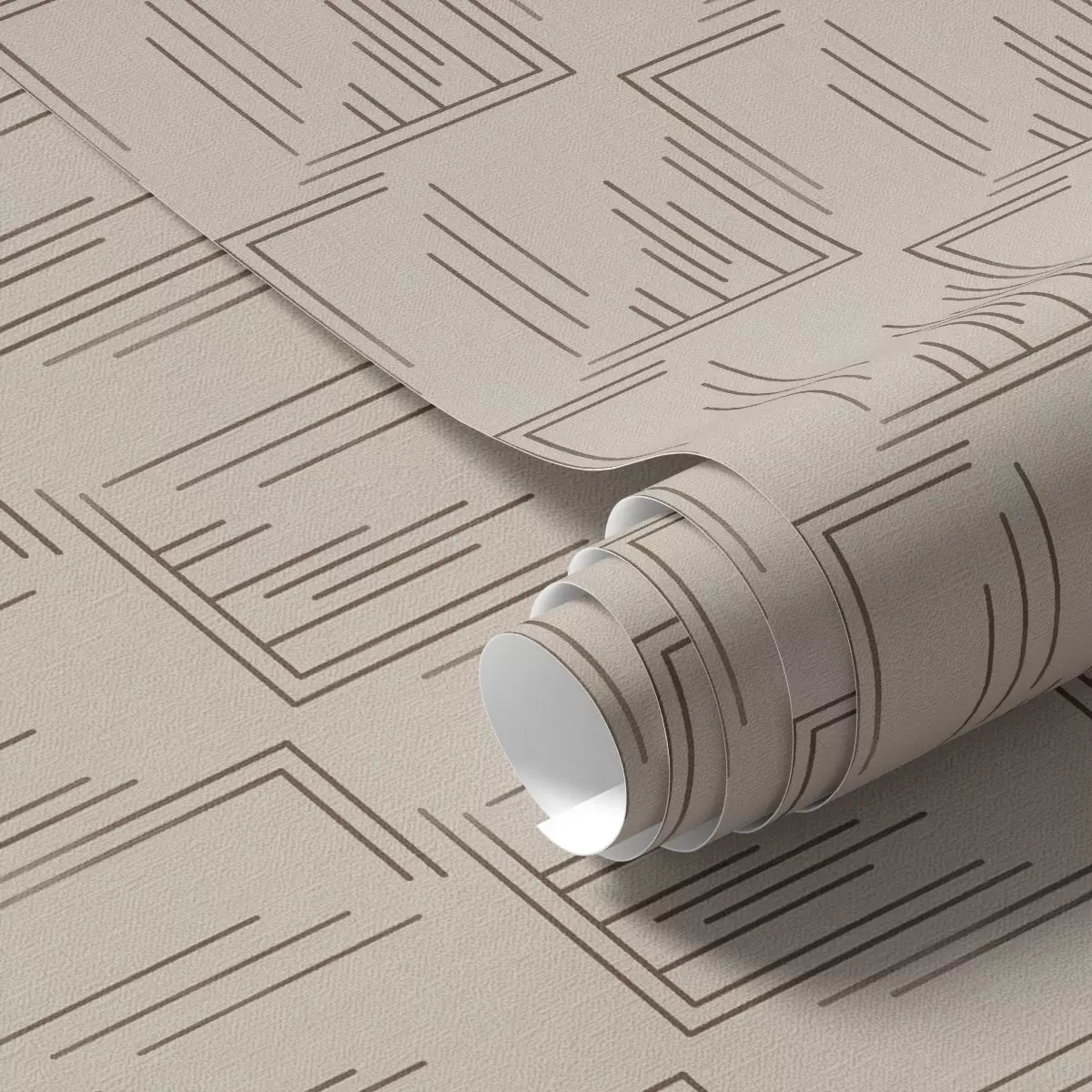 Τοιχογραφίες Γωνιακά τετράγωνα με γραμμές κακάο σε ζεστό μπεζ χρώμα Nr. a00910
