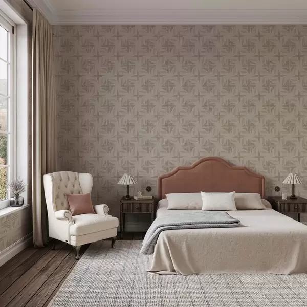 Τοιχογραφίες Πλέγματα γραμμών κακάου με μικρά κεντρικά σταυρό, μπεζ Nr. a00911