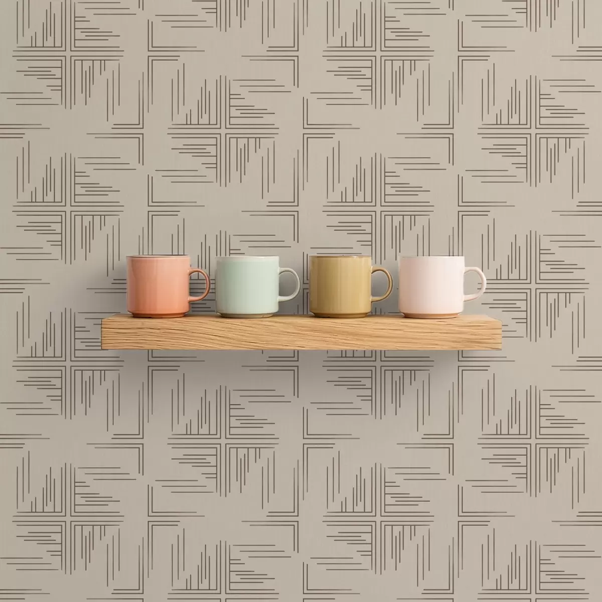 Τοιχογραφίες Γωνιακά μπλοκ κακάο με διάσπαρτα γραμμικά μοτίβα, μπεζ Nr. a00912