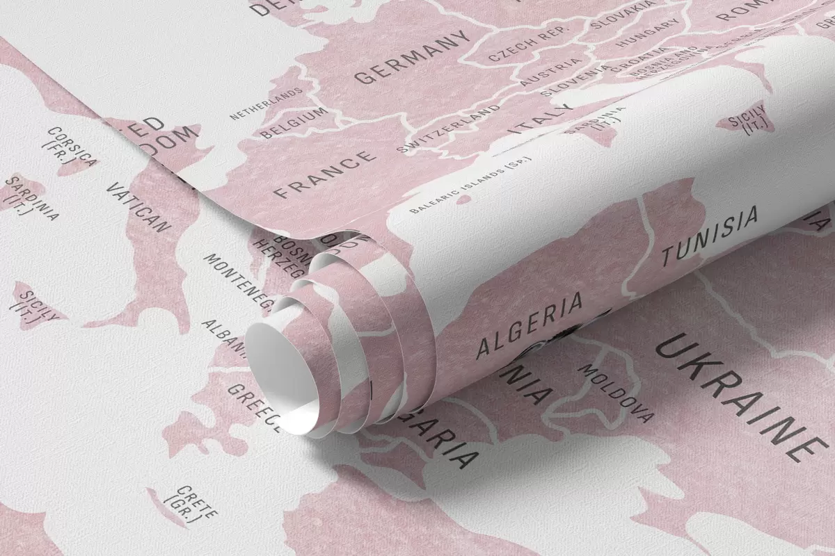 Τοιχογραφίες Παιδικός χάρτης σε στυλ ακουαρέλας με ζώα και αερόστατα. Αγγλική γλώσσα. Ροζ χρώμα. Nr. c00001env3