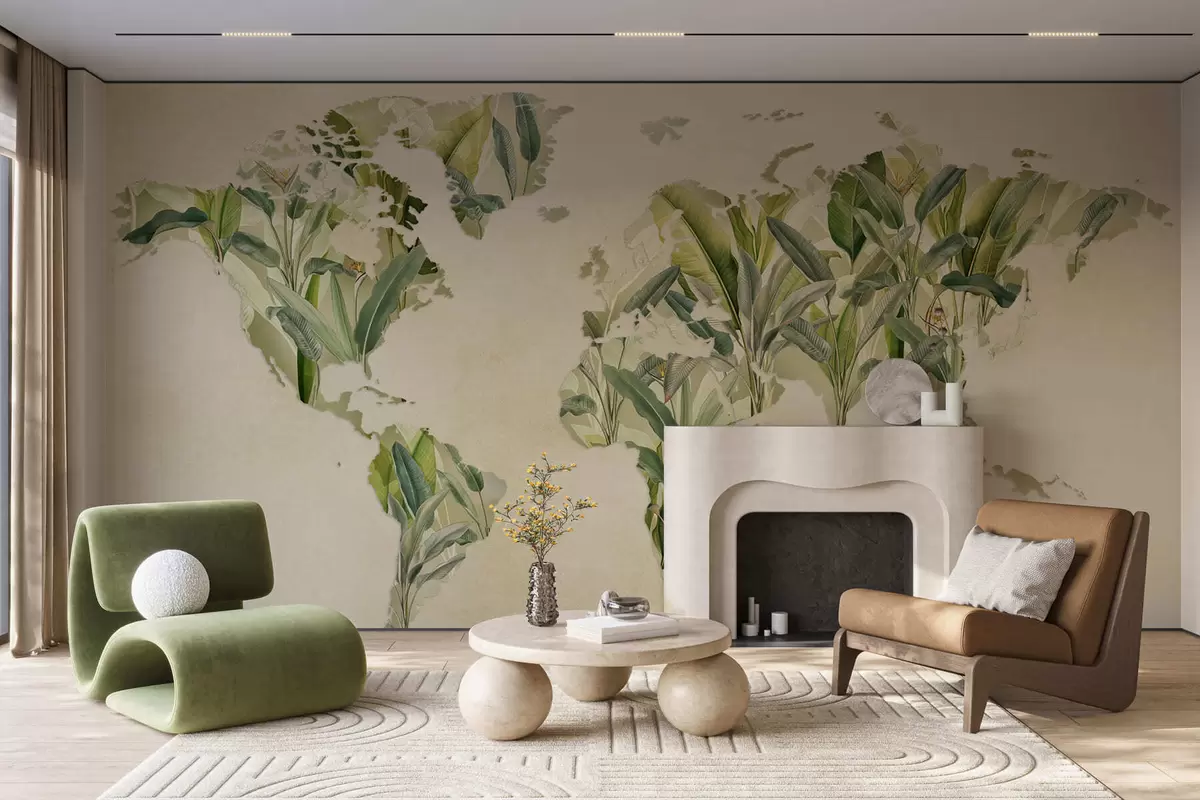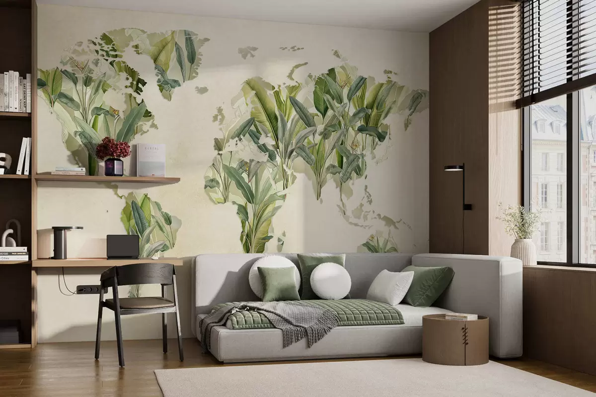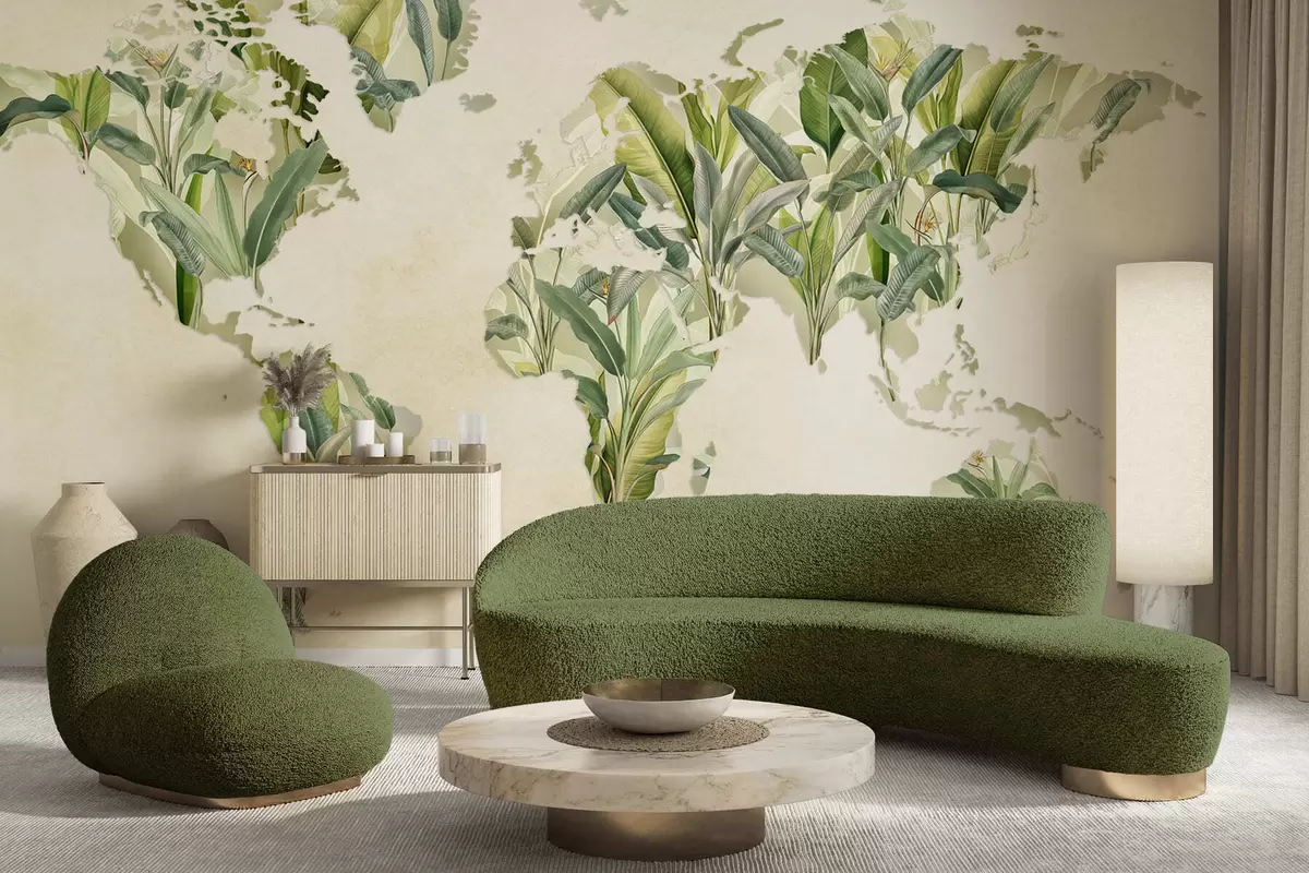 Τοιχογραφίες Ένας πράσινος χάρτης του κόσμου φτιαγμένος από φύλλα μπανάνας Nr. c00007