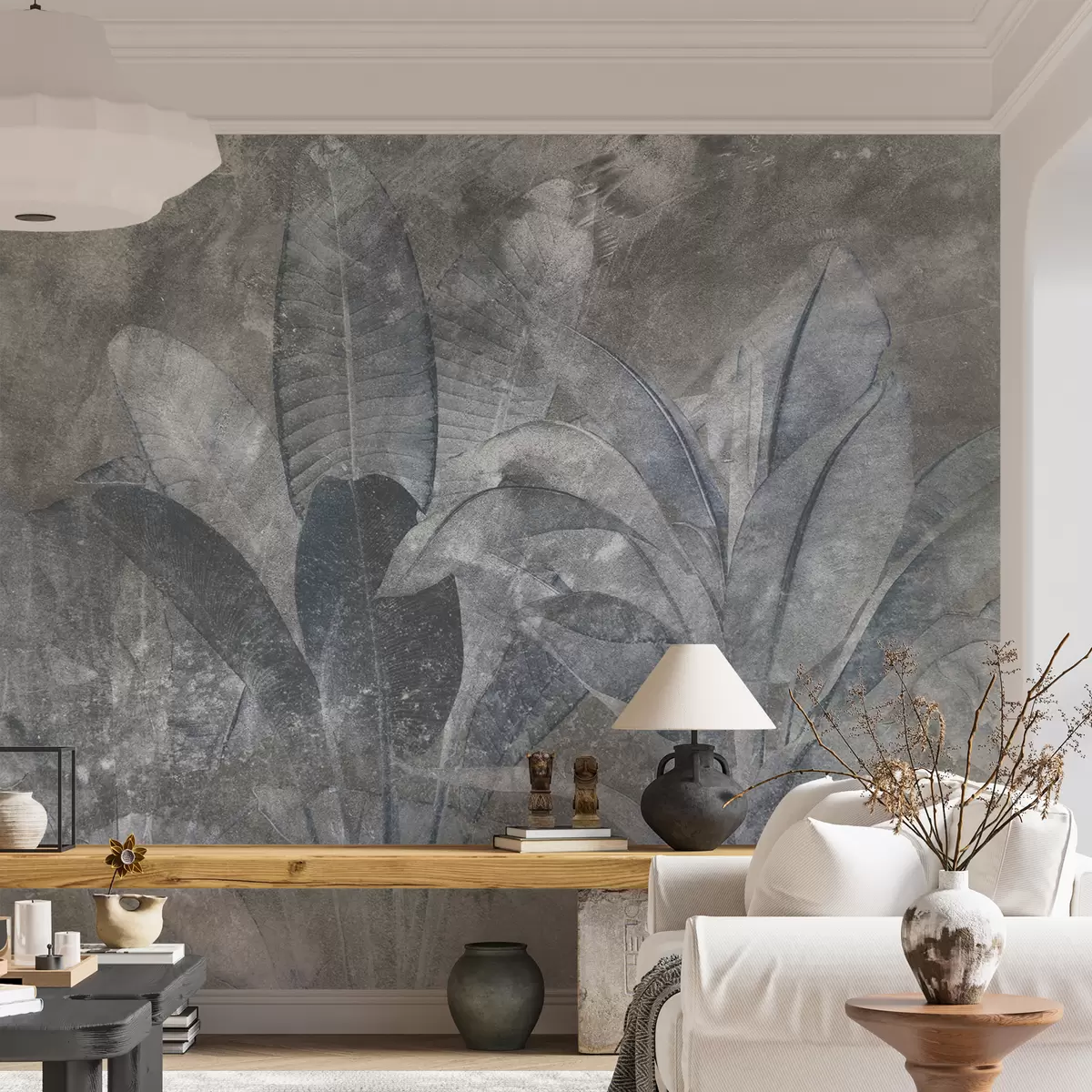 Τοιχογραφίες Φύλλα μπανάνας σε πέτρινο φόντο Nr. u73884v3